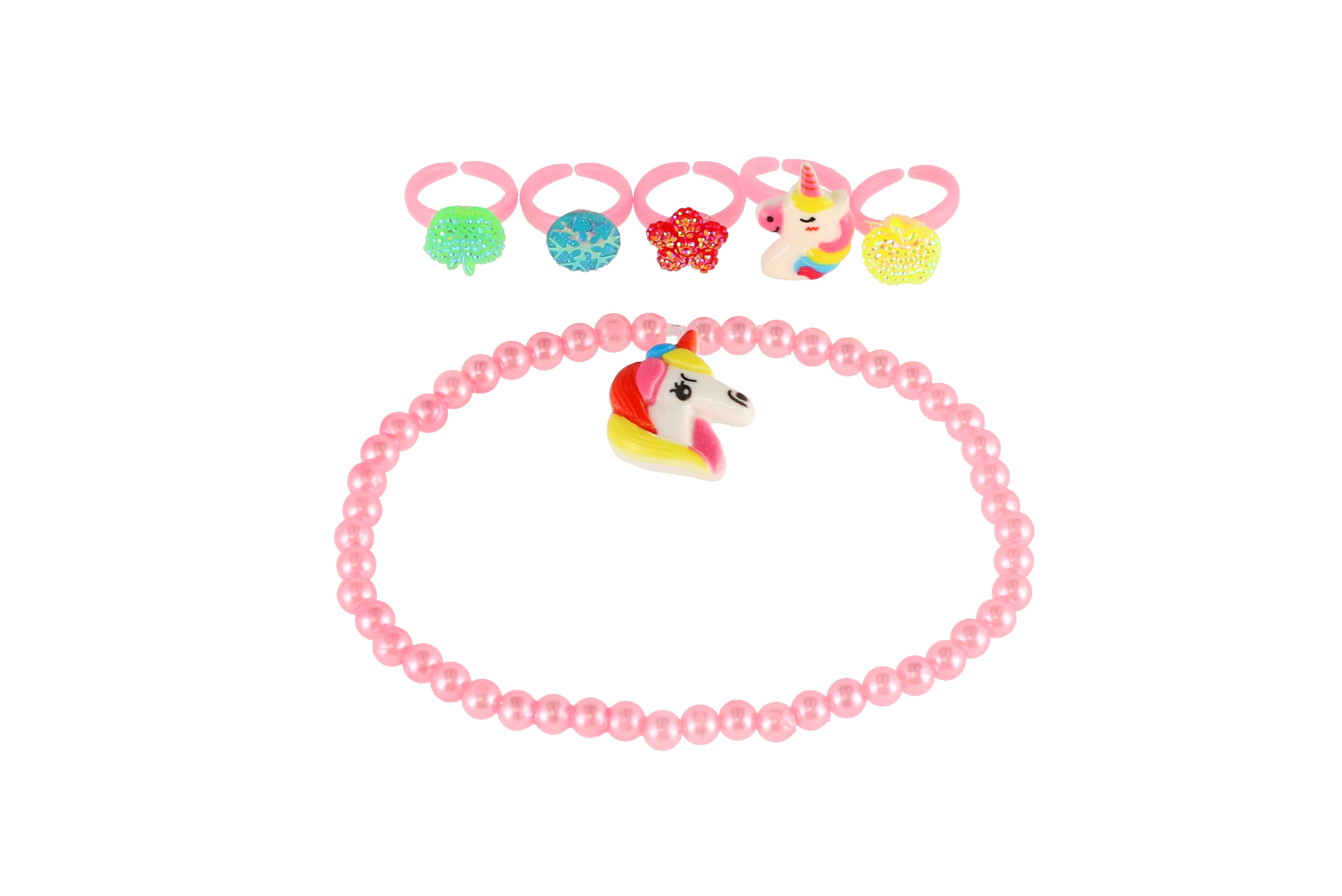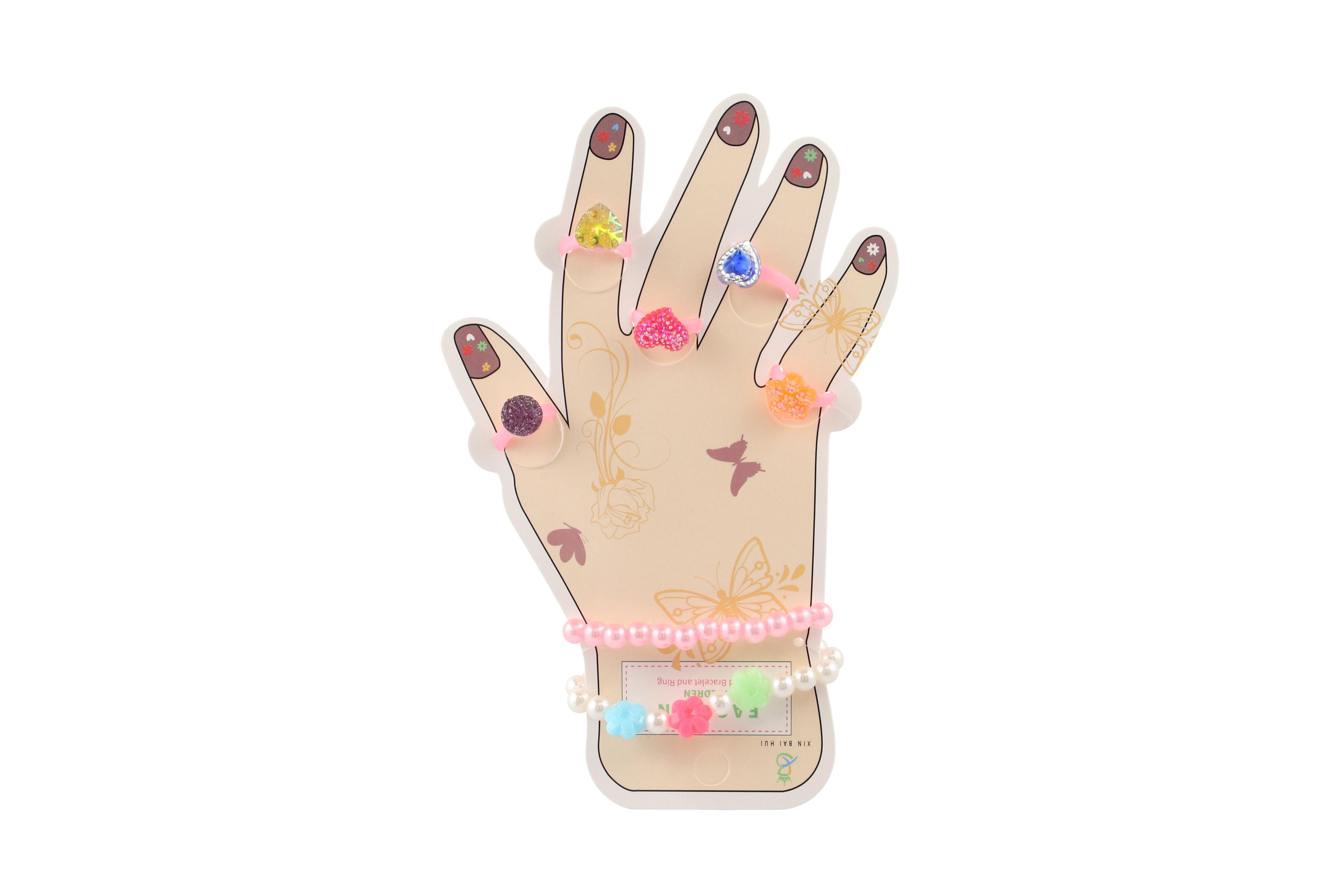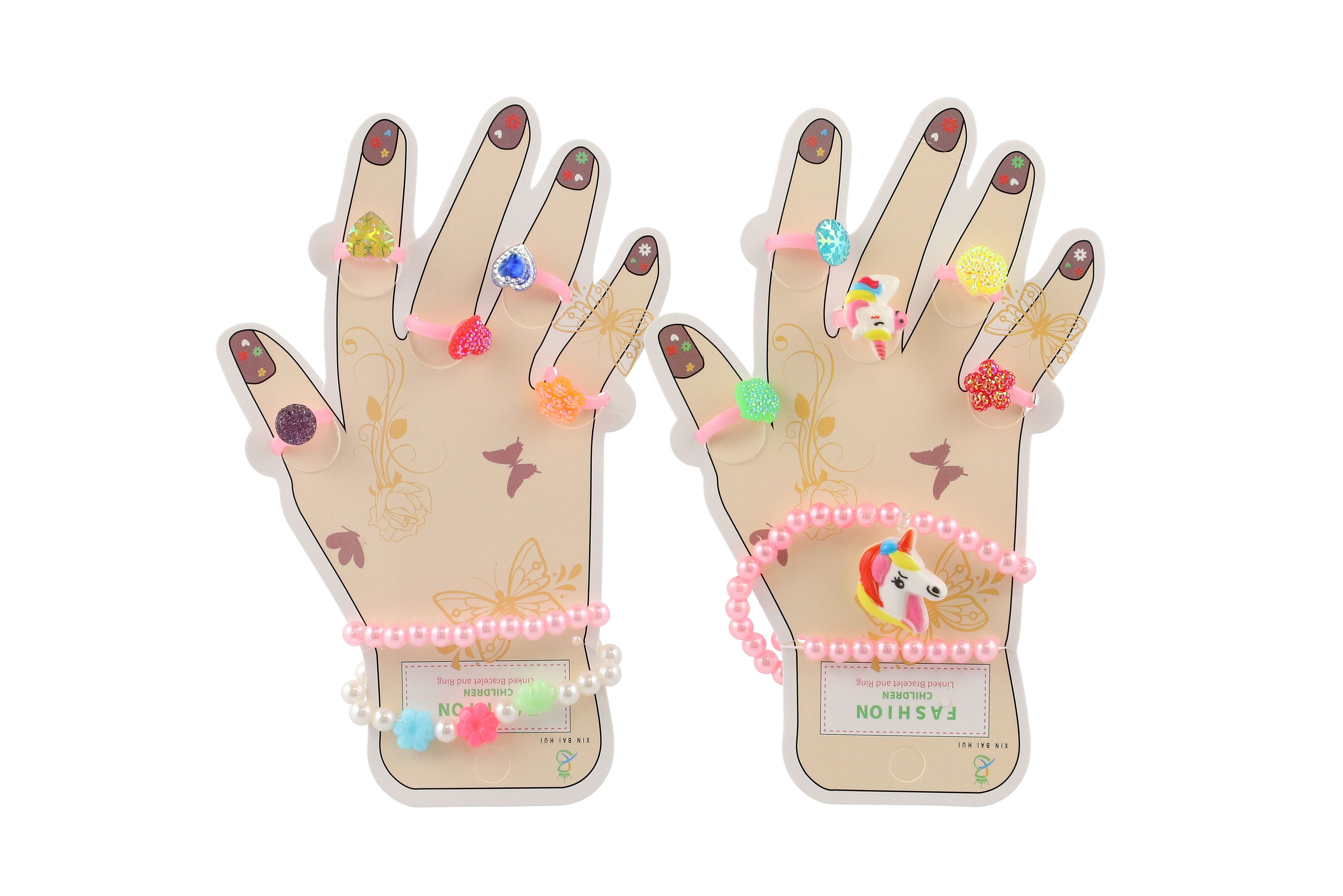 Popis Teddies Sada krásy plast prstýnky 5ks + náramky 2 ks 2 druhy v sáčku 12x17cm