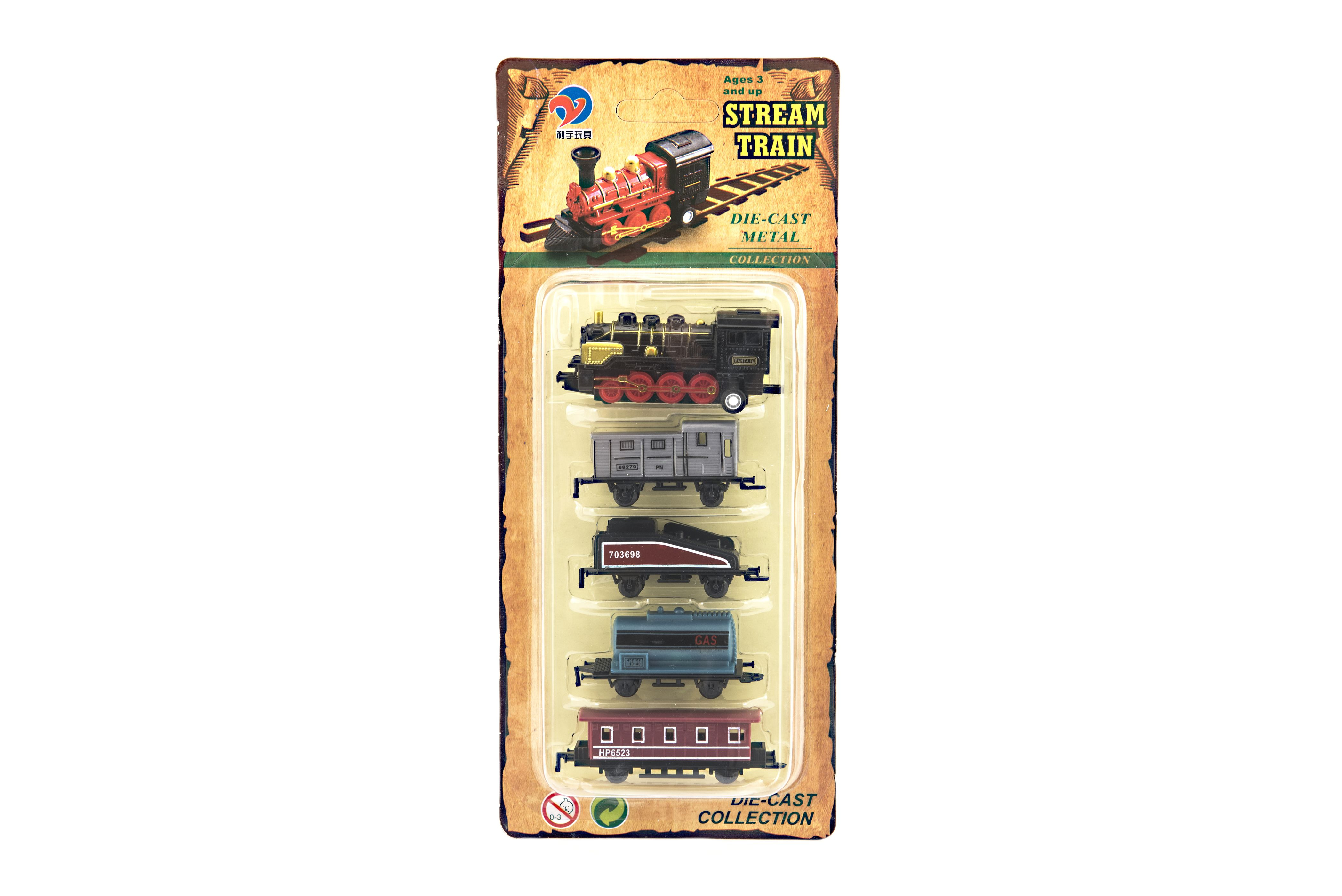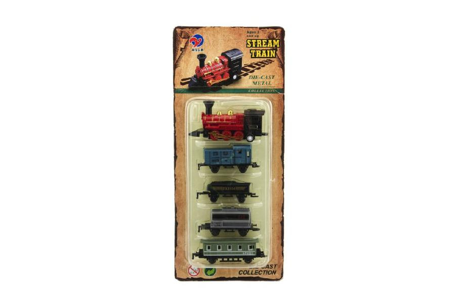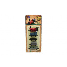 Teddies Vlak/lokomotiva a vagóny 5ks kov/plast 8cm na zpětné natažení 4 druhy na kartě
