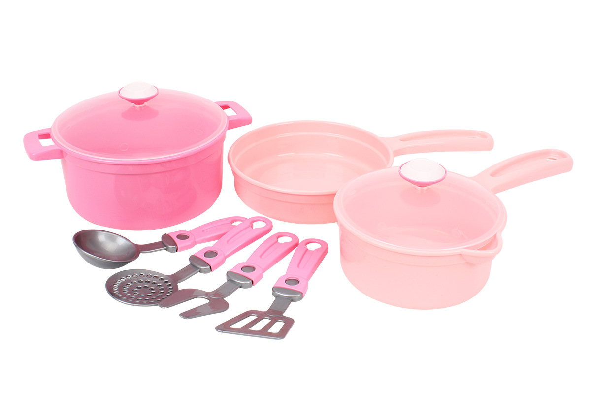 Sada nádobí s doplňky plast růžová v síťce 20x30x10cm 18m+