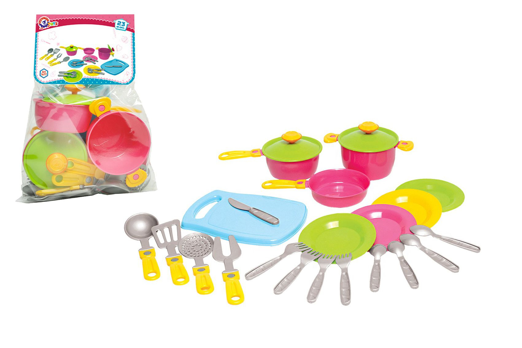 Kdo by řekl, že při vaření může být zábava i pro děti? Tato sada nádobí potěší každou malou začínající kuchařku. Nádobí je vyrobeno z velice kvalitního a zdravotně nezávadného plastu, který je odolný vůči mechanickému poškození. Rozměry balení 20 x 12 x 12cm. Vhodné pro děti od 3 let.
