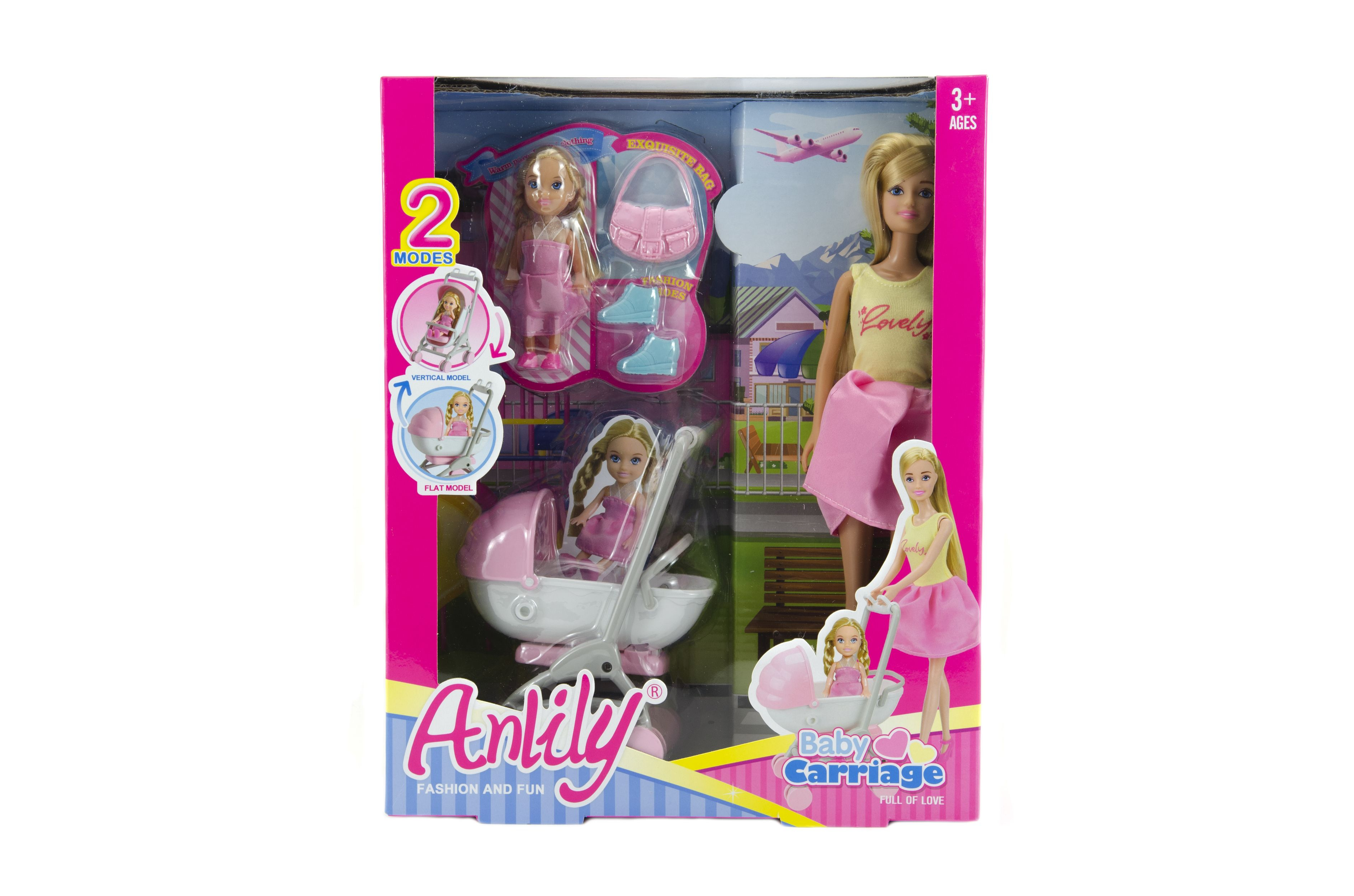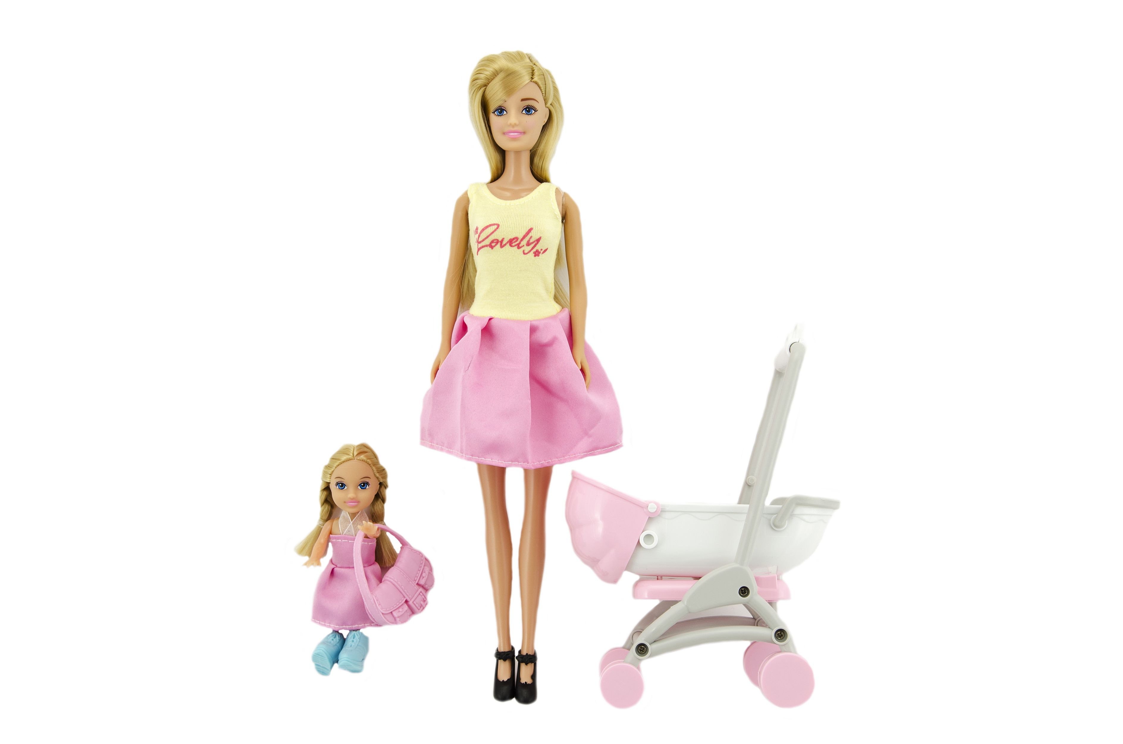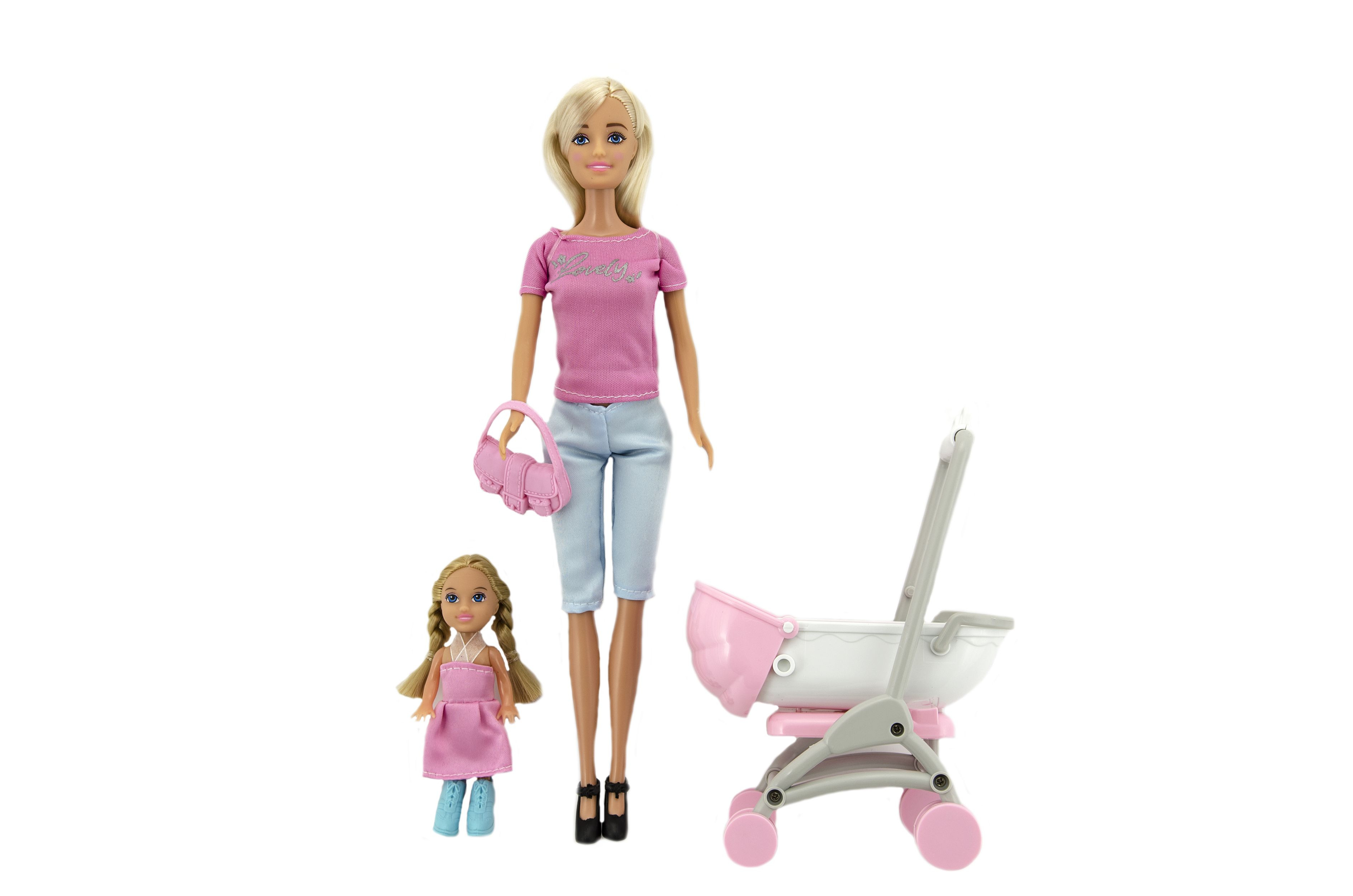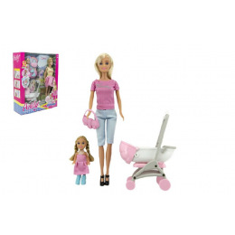 Teddies Sada panenka s holčičkou a kočárkem + doplňky plast v krabici 27x34x9cm