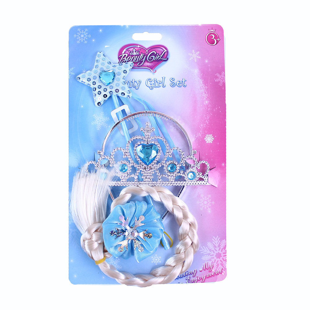 Která z holčiček by se nechtěla stát alespoň na malou chvíli princeznou! Půvabný set korunky, hůlky a copu pro zimní princezny! Korunka je dekorována ozdobnými kamínky v modré barvě.
