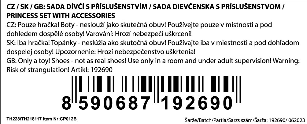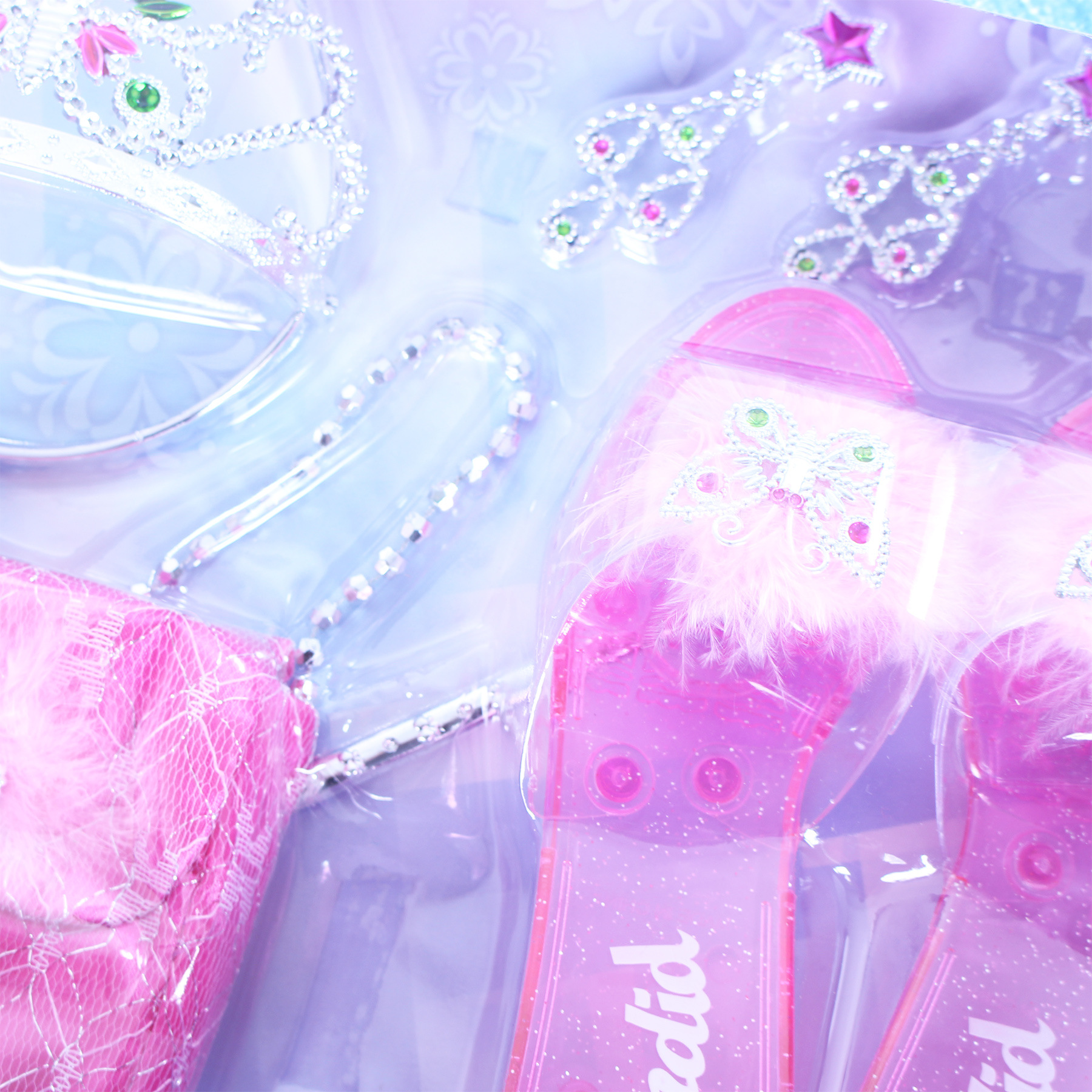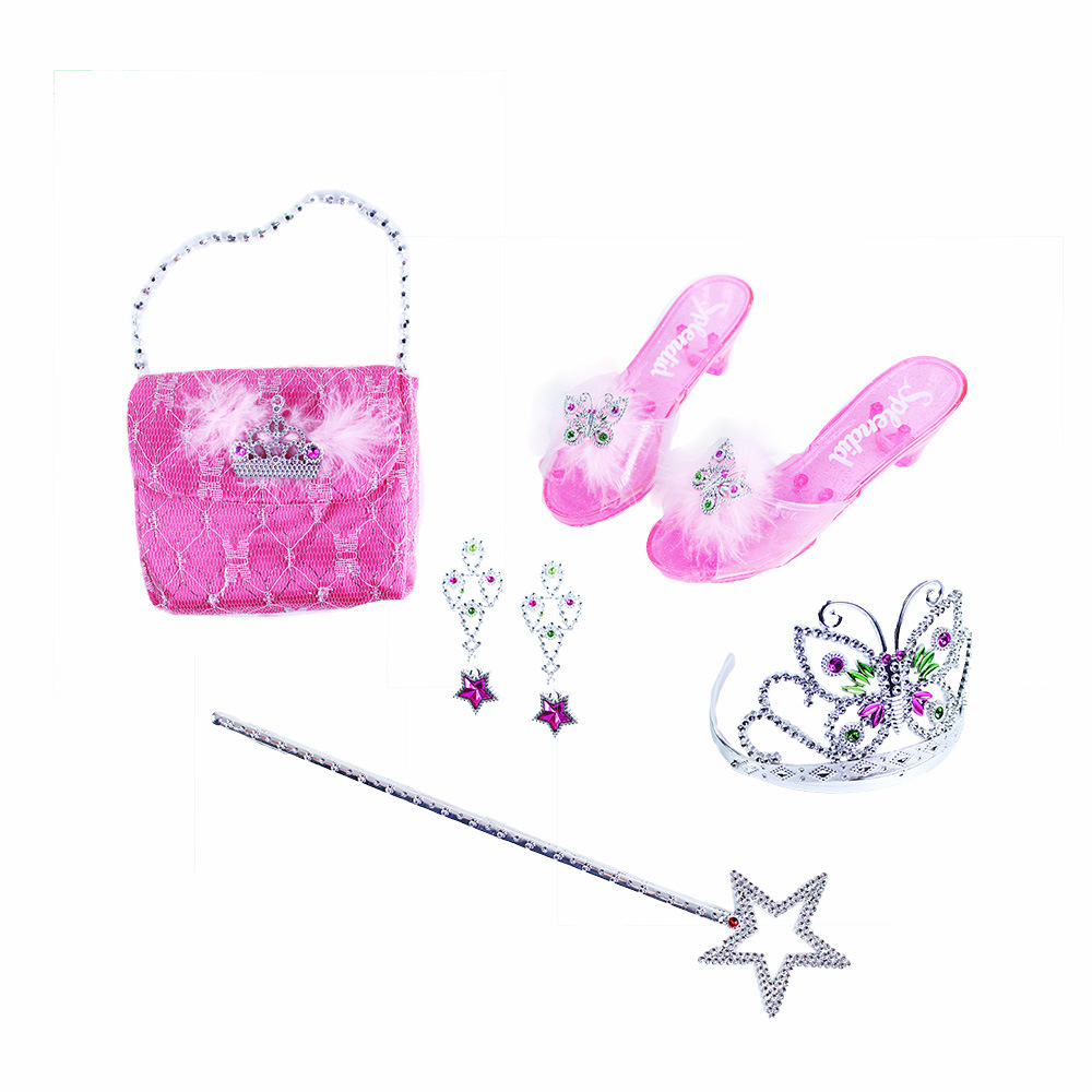 Stát se na chvíli pohádkovou princeznou? Díky této sadě to zvládneš i ty! Set obsahuje střevíčky, kabelku, čelenku s korunkou, náušnice a hůlku. Velikost střevíčků je cca 19 cm. Doporučeno pro děvčata od 3 let.