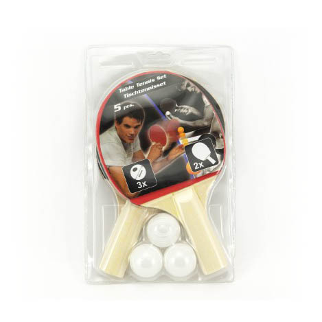Set na stolní tenis, který je vhodný pro rekreační hru. Sada obsahuje dvě pálky a 3 míčky. Vhodné od 3 let. Balené na kartě 18x29cm.
