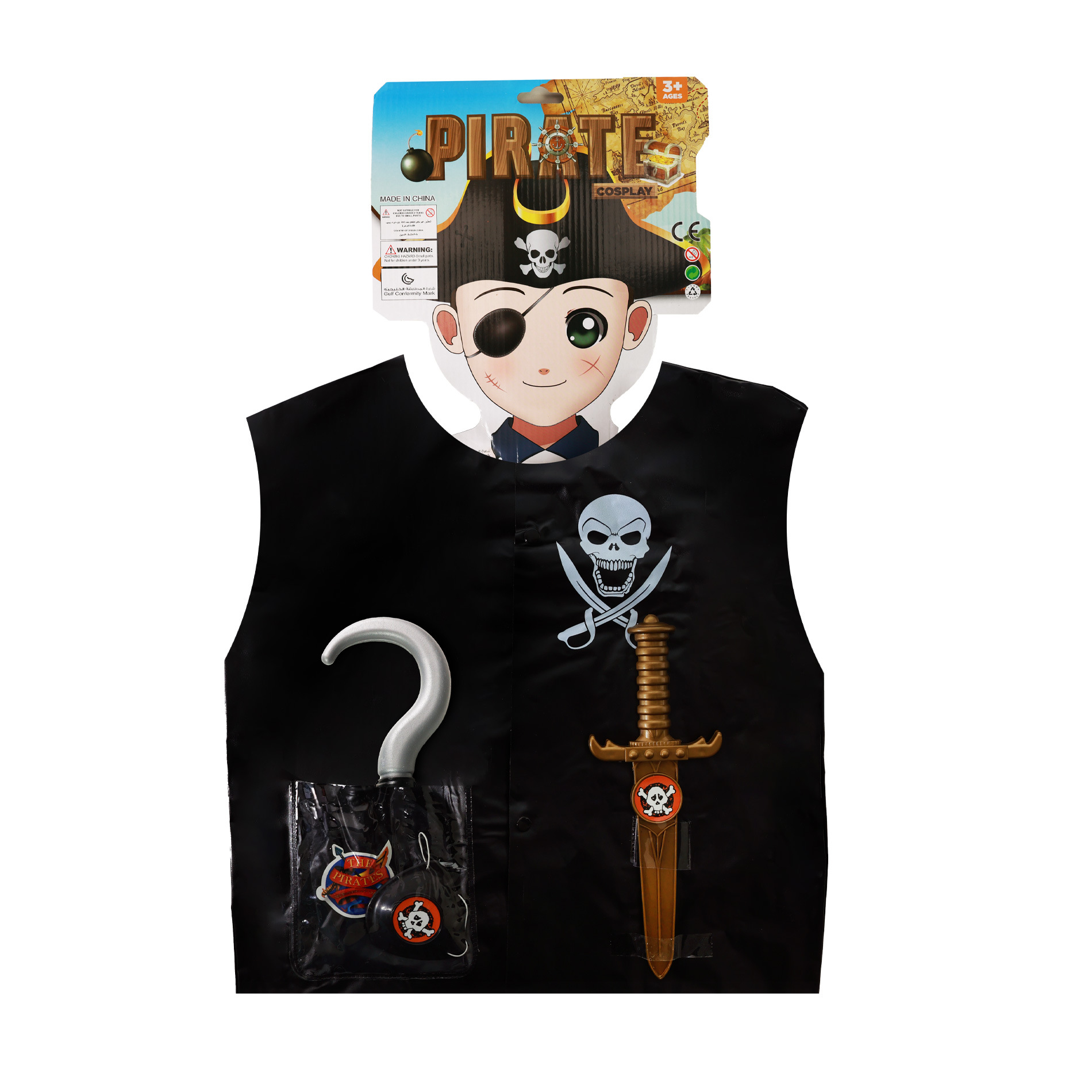 Parádní karnevalový kostým s motivem piráta je určen pro chlapečky ve věkovém rozmezí 3-7 let (104-122 cm). Balení obsahuje plášť, plastovou dýku a hák.