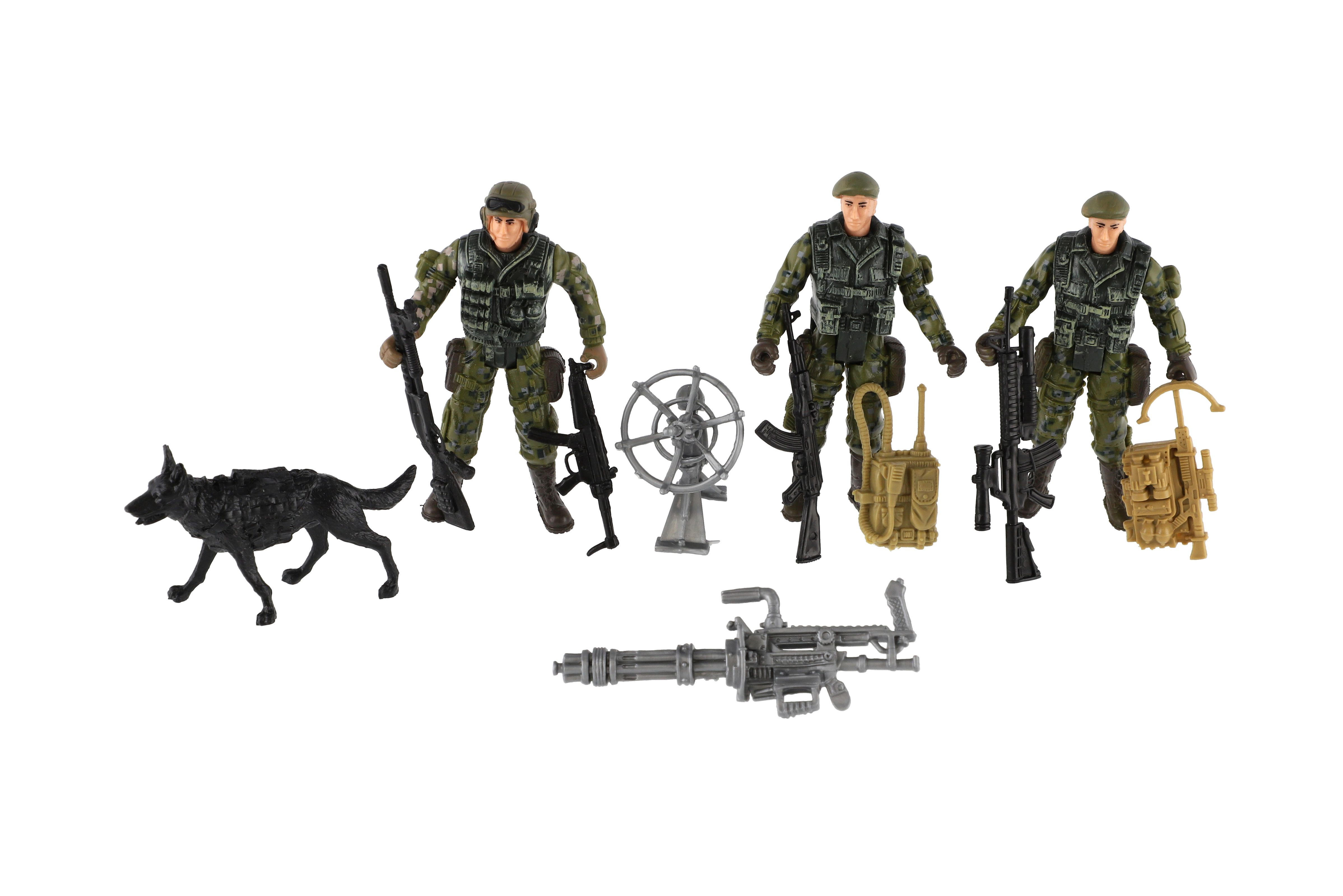 Teddies Sada vojáci se psem s doplňky 6ks plast v sáčku 17x20x3cm