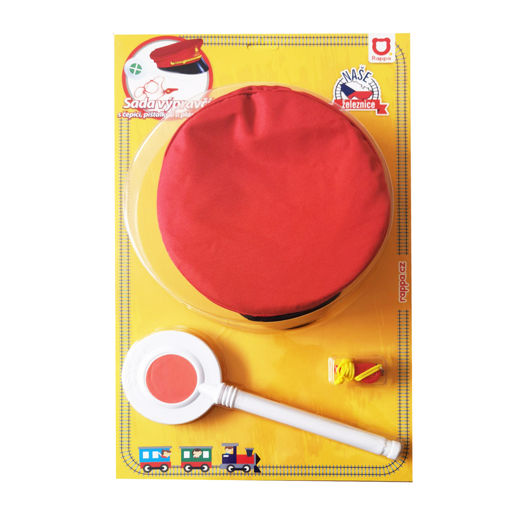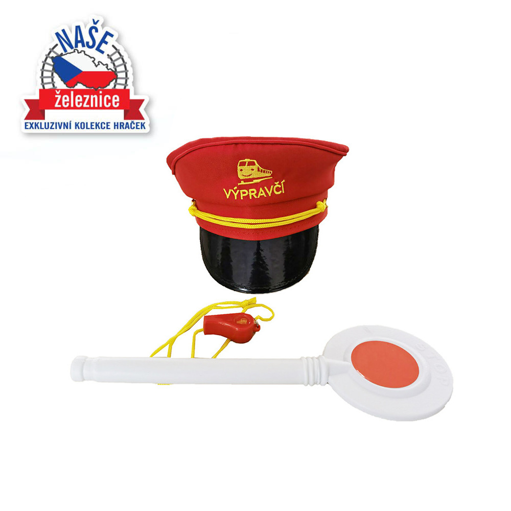 Jsi fanda do železnice? V tom případě ti nesmí chybět tato báječná sada výpravčího! Najdeš v ní stylovou červenou čepici s výšivkou, píšťalku a výpravku. Tak teď už jenom nasadit čepici, zapískat na píšťalku, zvednout výpravku a vlak může konečně vyjet ze stanice!