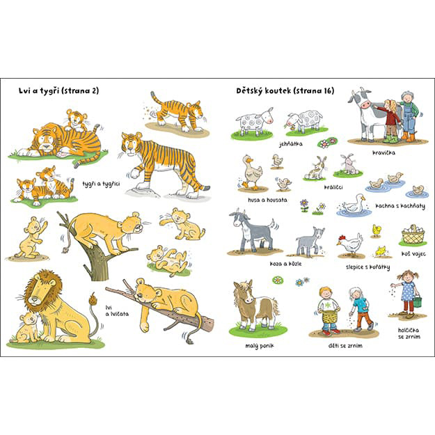 Samolepková knížka obsahuje 16 barevných stran a 8 stran samolepek k dolepení.
