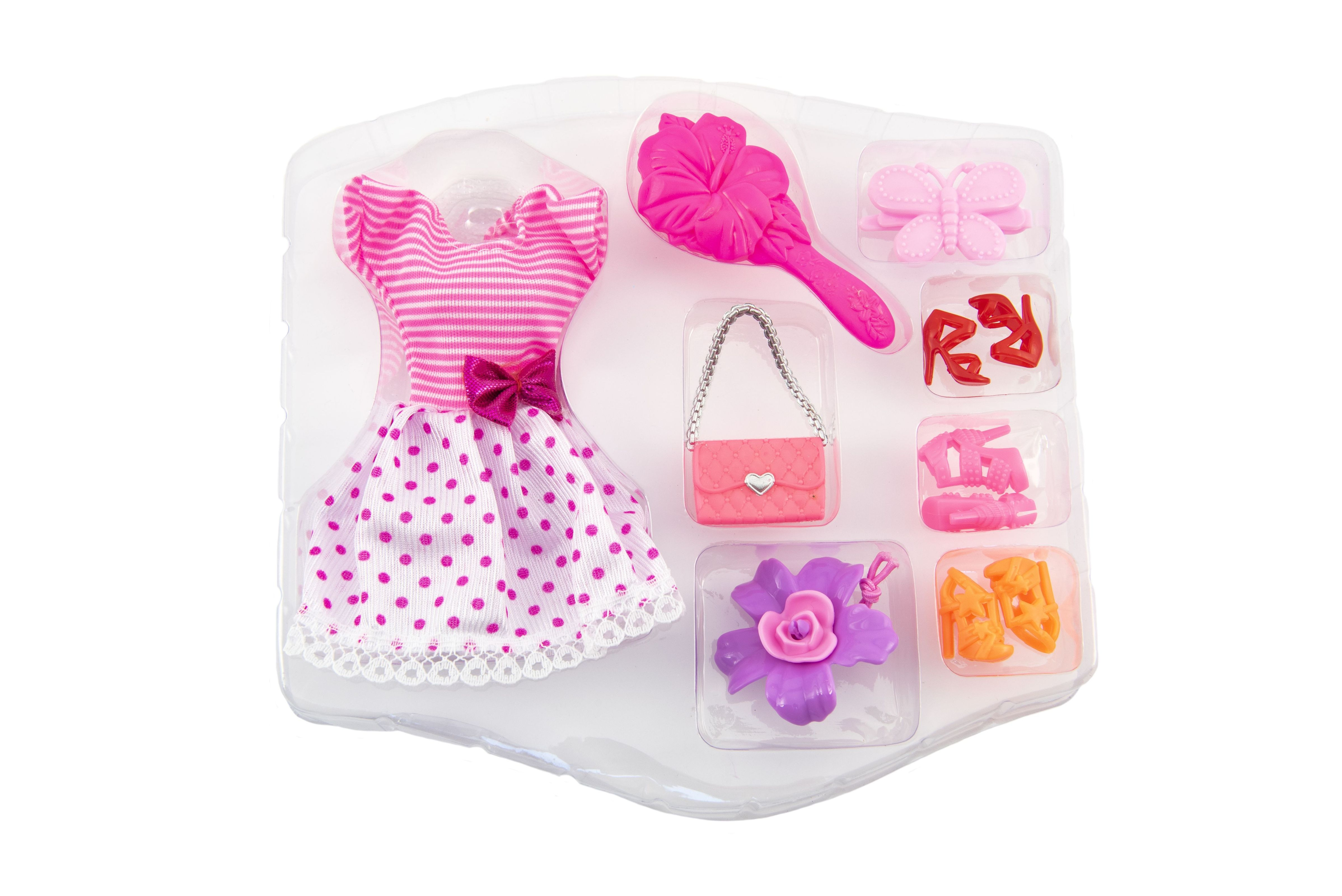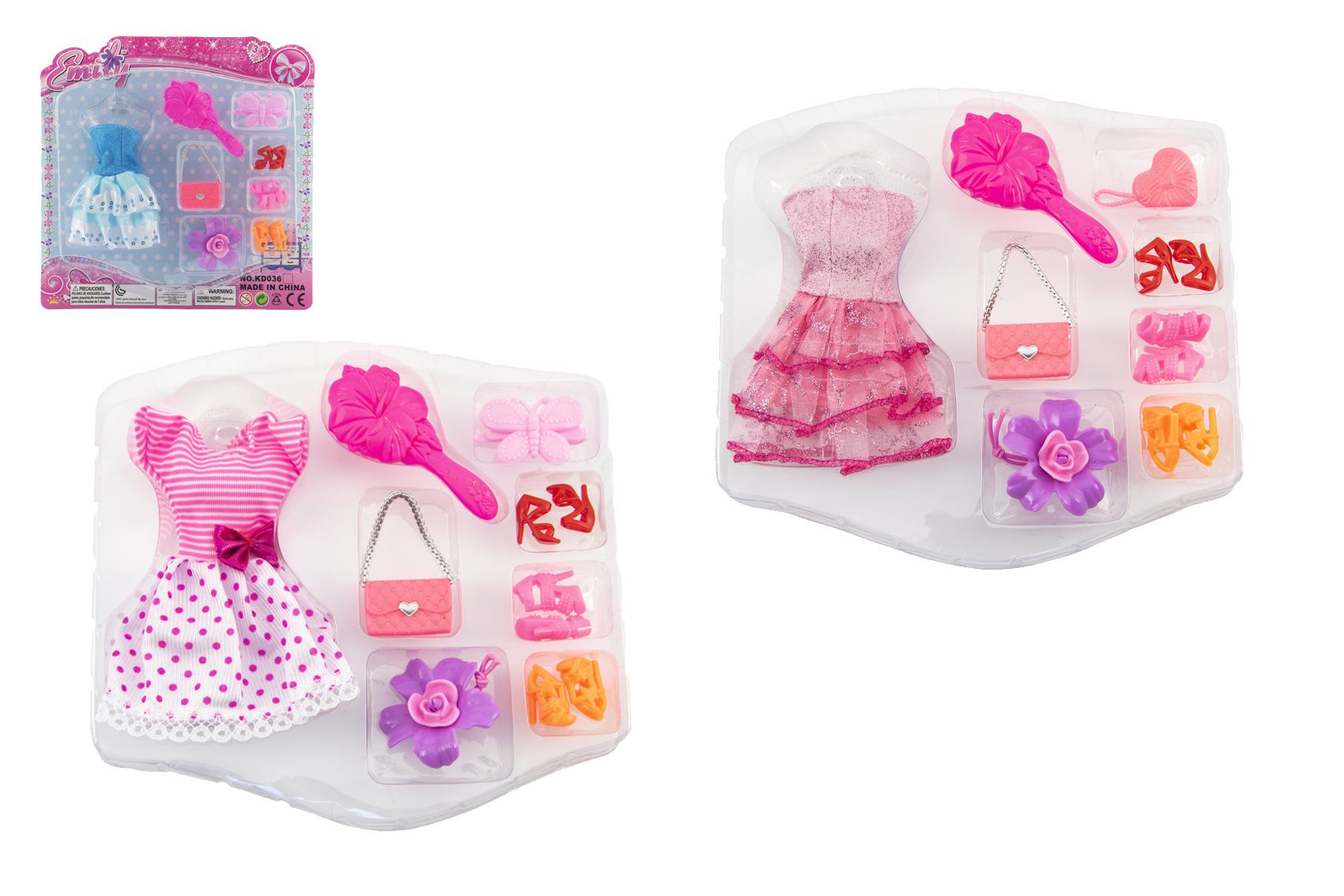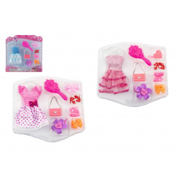 Popis Teddies Šaty/oblečky na panenky s doplňky 3 druhy na kartě 24x24x3cm