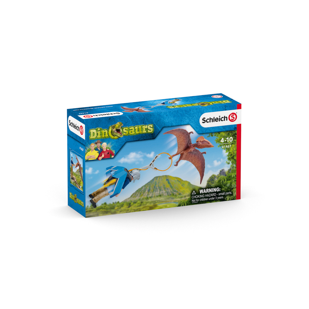 Pteranodon byl jedním z největších ptakoještěrů v období křídy. Nápadný kostěný hřeben na jeho týlu sloužil jako protiváha k jeho dlouhému zobáku. Pravděpodobně nemával křídly příliš často, ale spíše využíval vítr, aby mohl vzduchem plachtit podobně jako albatros. Řecké slovo pteranodon znamená „bezzubé křídlo“. Více informací lze o dinosaurech zjistit v přiložené brožuře! Rozměr: 23,2 x 6,4 x 14,9 cm. Nevhodné pro děti do 3 let. Doporučený věk: 4-10