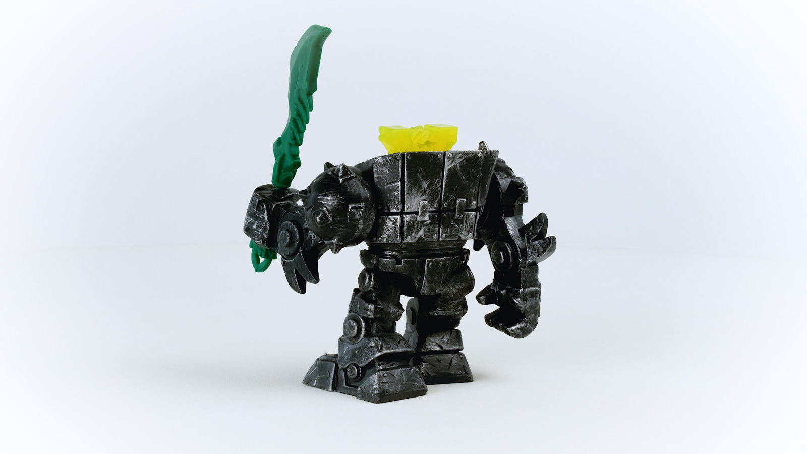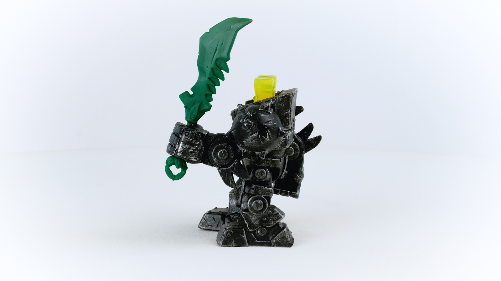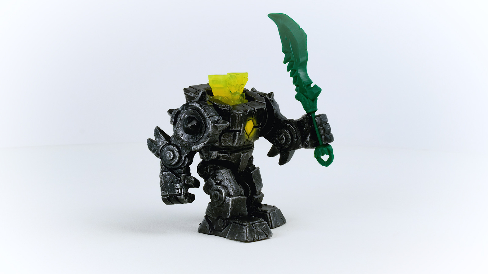 Bez ohledu na to, jak tvrdí jsou odpůrci kamenného Robota Eldrador Mini Creatures od Schleich® Eldrador®, on je tvrdší! Obr byl stvořen Mini tvory, aby po několika zničujících bitvách znovu vybudoval Kamenný svět. Pohyblivými pažemi a mocným kamenným kladivem roztříští balvany, které leží kolem, odhází suť z cesty a vytesá chladné jeskyně. Mini tvorové jdou do společného boje a Kamenný Robot jde s nimi! Robot je ovládán pánem kamenů, vůdcem Mini tvorů v Kamenném světě. Malý, divoký tvor je stvořen ze super tvrdých krystalů. Jakmile se usadí do Kamenného Robota, stačí jedna rána jeho kladivem a promění bublající lávový svět v kamennou krajinu bez života, ledový svět je rozbit do drobných střepin a svět džungle je jednoduše pošlapaný! Sada obsahuje: 1x robot, 1x zbraň, 1x mini figurka. Figurky Schleich jsou mimořádně detailní, láskyplně malované a umožňují dětem hrát si a zároveň se učit. Nevhodné pro děti do 3 let. Rozměr balení: 13 x 19 x 10,5 cm. Doporučený věk: 7-12.