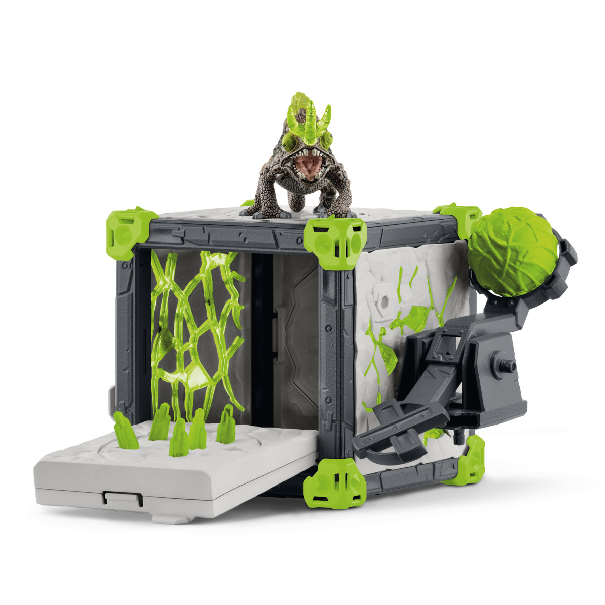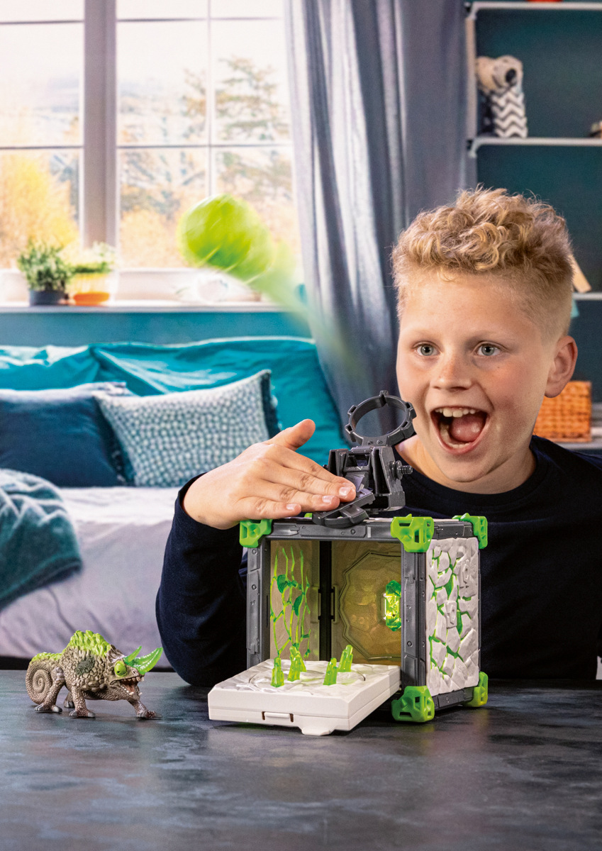 Kamenný chameleon změnil svou arénu BattleCave na skutečnou pevnost, aby v ní ochránil krystal světa před zloději. Díky svým velkým očím dokáže z dálky rozpoznat, že se k němu blíží útočník. Je čas uvést katapult na střeše do správné polohy a naložit munici. Raději se kryjte před velkou koulí! Chameleon umí docela dobře střílet a v případě potřeby může také připevnit katapult k boku arény BattleCave. Arény ELDRADOR® CREATURES BattleCave promění každý dětský pokoj v akční zónu! Kdo bude čelit dechberoucí bitvě? Všechny arény BattleCaves lze kombinovat. Na útočníky čekají děsivé tunely a záludné pasti. Ve velké aréně se pak mohou utkat v závěrečném souboji. To je ale boj! Rozměry balení: 23 x 16,5 x 28,5 cm. Věk: 7+