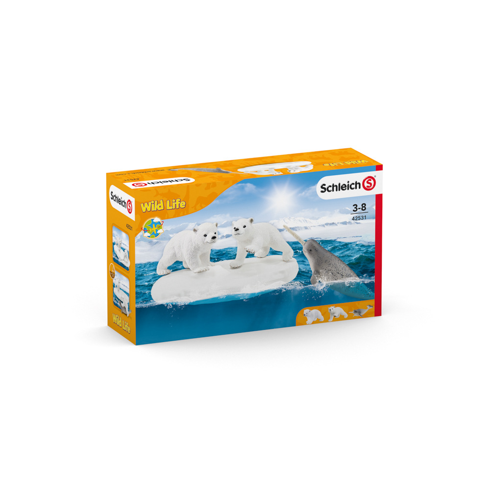 Dva lední medvědi na ledním hřišti Schleich® WILD LIFE si užívají spoustu zábavy. Na své ledové kře vesele poskakují a dovádějí! Ach ne! Jeden z ledních medvědů se odvážil příliš blízko k okraji a spadl do vody! Naštěstí plave kolem přátelský narval. Ihned plave k malému lednímu medvědovi a pomáhá mu zpět na ledovou kru! Figurky Schleich jsou mimořádně detailní, láskyplně malované a umožňují dětem hrát si a zároveň se učit. Rozměr balení: 19 x 11,5 x 5,5 cm. Nevhodné pro děti do 3 let. Doporučený věk: 3-8.