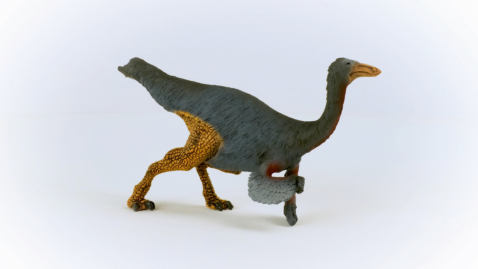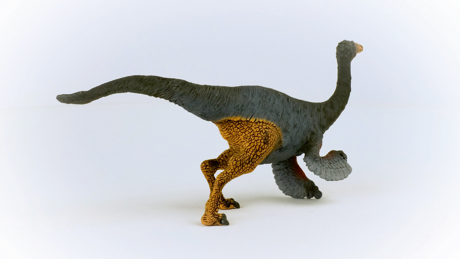 Pozor! Zrovna teď proběhne gallimimus okolo, dívej! Jé, a už je zase pryč! Tenhle dinosaurus umí běhat tak rychle, že se ti snadno ztratí z dohledu. Možná proto je dobré držet si ho u sebe. Díky tomu si ho můžeš pořádně prohlédnout a obdivovat, zvlášť peří na jeho předních nohách, elegantní dlouhý krk a silný zobák – skoro jako pták. Neumí létat, ale to gallimimus ke štěstí ani nepotřebuje, on totiž umí super rychle běhat! Rozměry: 21,6x9,1x4,4cm. Vhodné pro děti od 3 let.