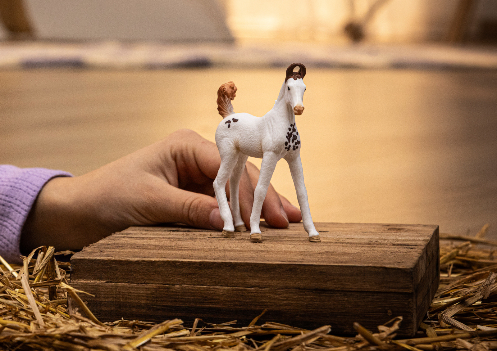Na první pohled je vidět, jak je tohle malé hříbě temperamentní. Vyklusává si po pastvině na svých dlouhých nohách a s radostí zkoumá vše kolem. Není se čemu divit, je peruánský paso a v žilách mu koluje oheň! Má nastražené uši a ocas zvednutý do vzduchu… Je čas na dobrodružství! Když kolem sebe nemá žádná další hříbata, se kterými by si mohlo hrát, chodí kolem ohrady a nechává se hladit od kolemjdoucích, kteří se tu zastaví, aby obdivovali tohle roztomilé hříbě. Rozměry: 9,7x8x2cm. Vhodné pro děti od 3 let.
