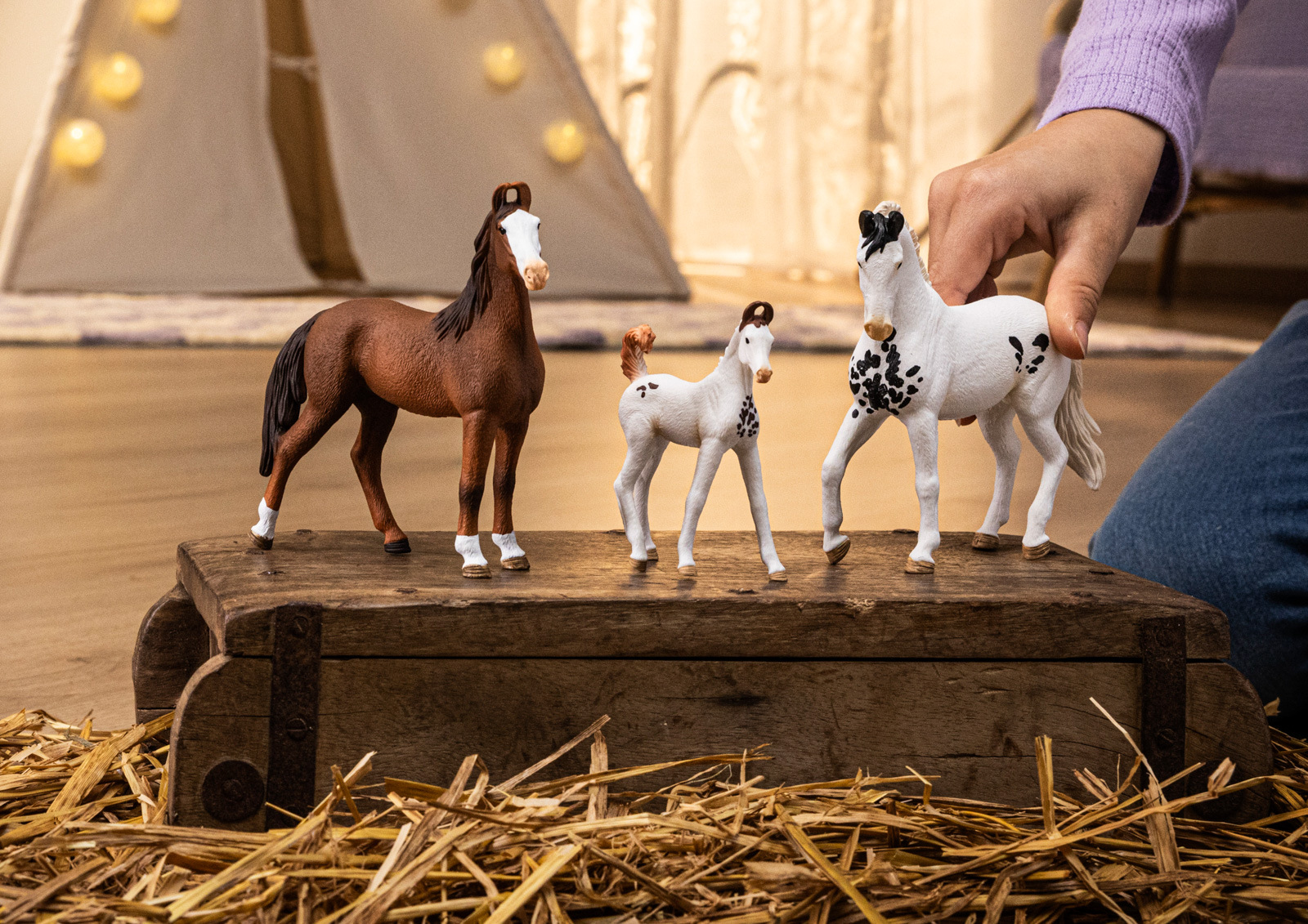 Andaluská hříbata dospívají teprve v šesti až sedmi letech. To je o dost později než hříbata jiných koňských plemen. V prvních letech se hravou formou učí zvyknout si na ohlávku nebo nechat se osprchovat. Tak hříbata získávají důvěru ke člověku. Ve Španělsku existují jeskynní malby andaluských koní staré 20–30 tisíc let. Rozměr figurky: 7,7 x 8,3 x 3 cm. Nevhodné pro děti do 3 let. Doporučený věk: 5-12 let.