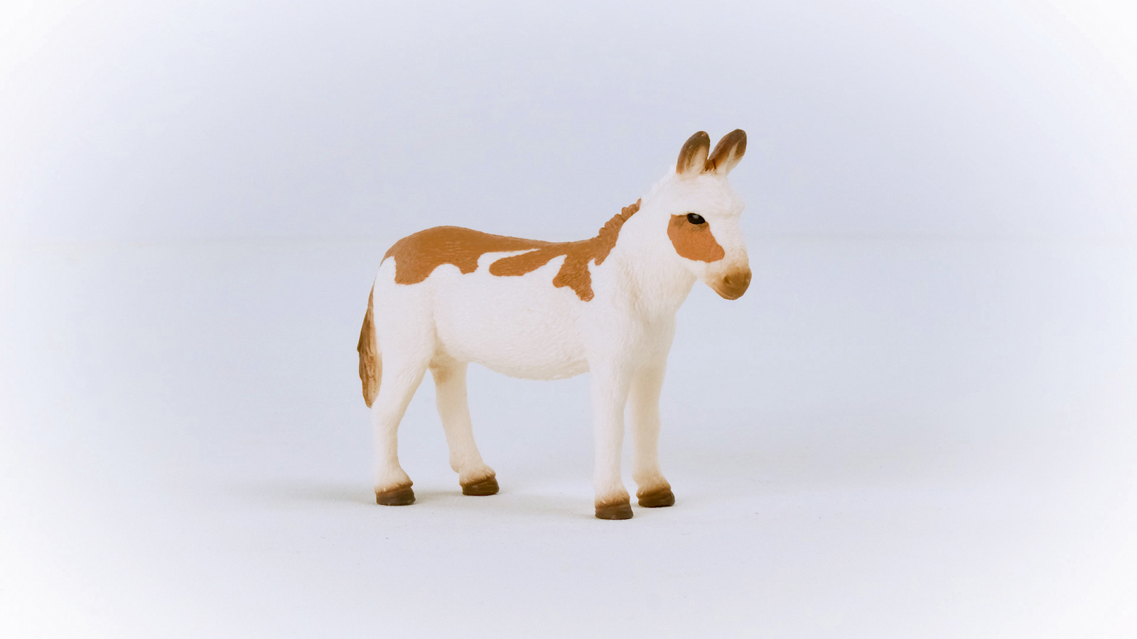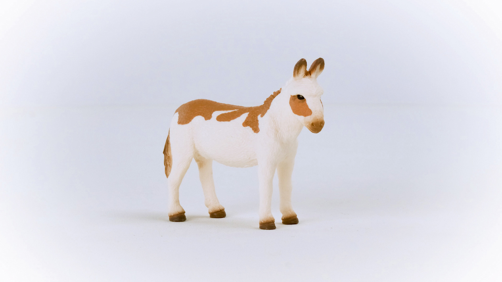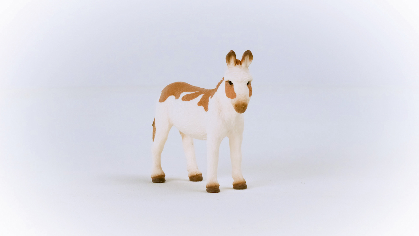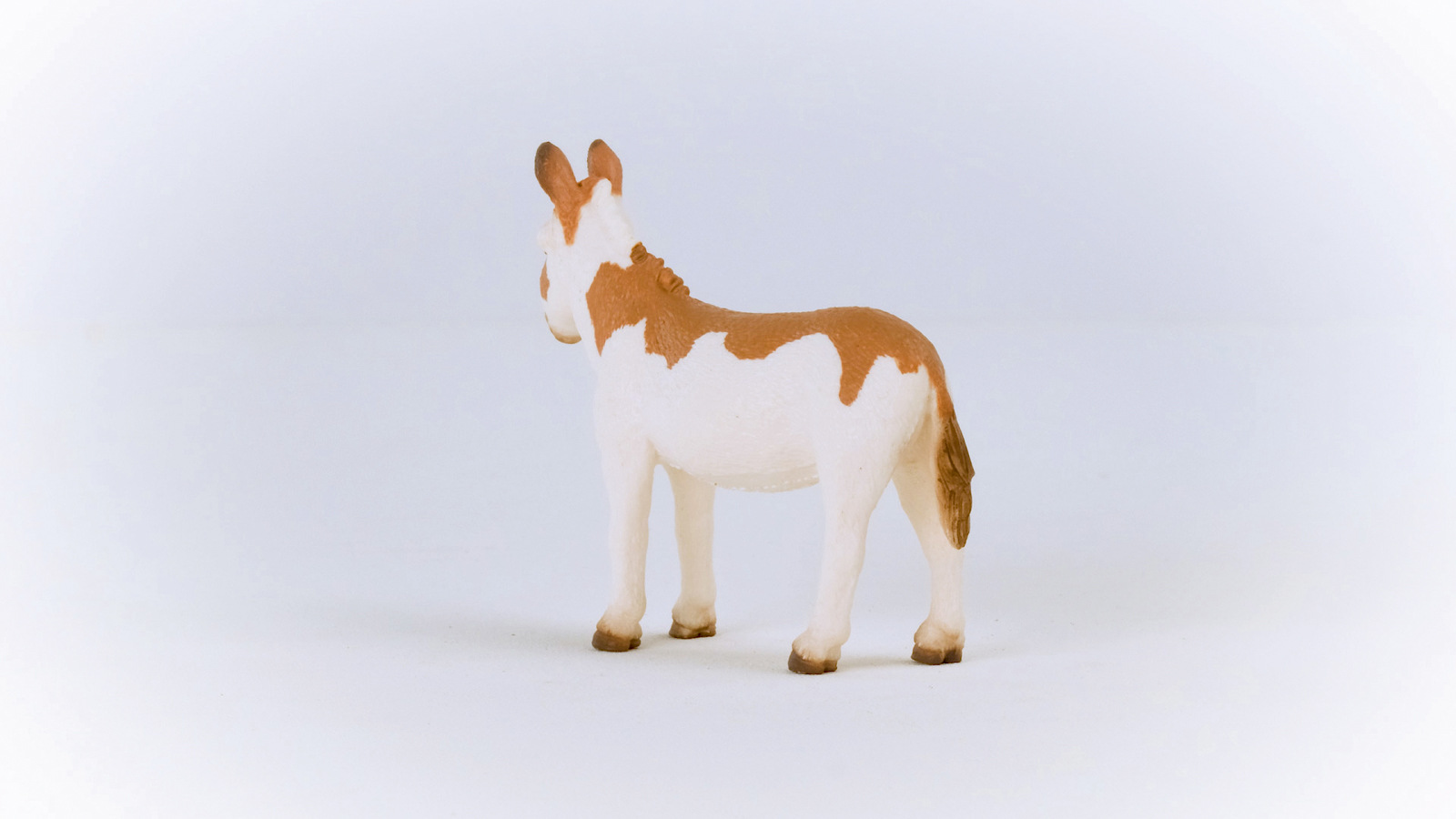 Díky hnědým skvrnám a světlé srsti vypadá osel skvrnitý nádherně a liší se od svých povětšinou šedých nebo hnědých kolegů. Stejně jako oni má ale osel americký typické dlouhé uši. A slyší vážně dobře, zvlášť když je pozorný jako právě teď a střihá ušima. Všímá si všeho, co se na farmě děje. Je docela chytrý, že? Rozměry:8x7x22cm. Vhodné pro děti od 3 let.