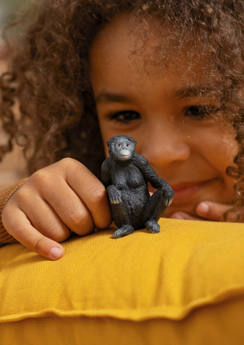 Je samice šimpanze Bonobo na polední pauze? Jen tak sedí a opírá si ruce o kolena. Možná se jí jen stýská po kamarádech na hraní. Šimpanzi Bonobo jsou velmi společenští a neradi jsou sami. Samice šimpanze Bonobo nejraději tráví čas se svou rodinou a samozřejmě se svými přáteli. Kam se všichni poděli? Třeba se brzy najde někdo, kdo jí bude dělat společnost. Rozměry balení: 6 x 4 x 4,2cm. Věk: 3+