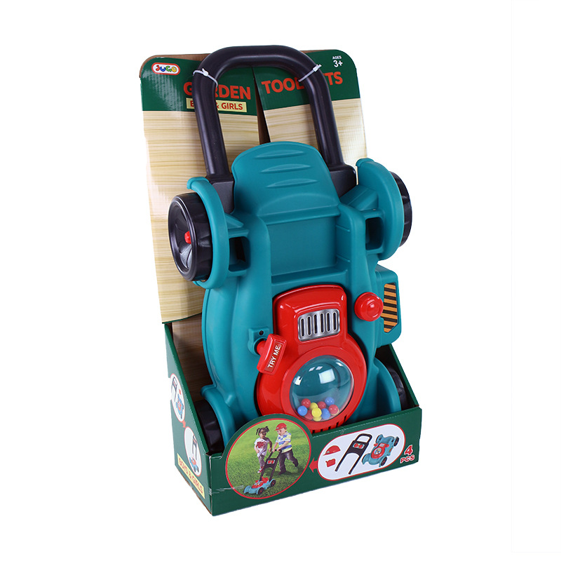 Dětská zahradní sekačka v barevném plastovém provedení je báječný pomocník pro malé zahradníky. Sekačka při povytažení šňůrky vydává zvuk. Součástí je helma na hlavu a kanystr.
