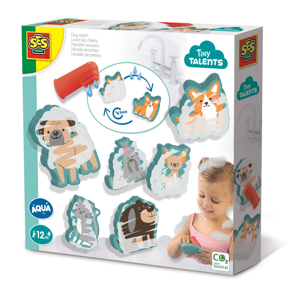 Vytvořte si kouzelný herní svět ve vaně s hrou Tiny Talents – Psí koupel. Sada obsahuje 6 pěnových vodolepek s motivy pejsků a jedné kočičky + kartáček na prst. Zvířátka jsou na vodolepkách vyobrazena jako zakryté pěnou, do té doby, než je vaše ratolesti začnou mýt vodou a přiloženým kartáčkem. Po namočení se zvířátka zobrazí v plné kráse. Vodolepky lze použít opakovaně. Podporuje nápadité vyprávění příběhů a zábavu při koupeli. Ideální pro děti, které milují péči o domácí mazlíčky a vodní dobrodružství. Rozměry balení: 20 x 20 x 4 cm. Věk: 1+