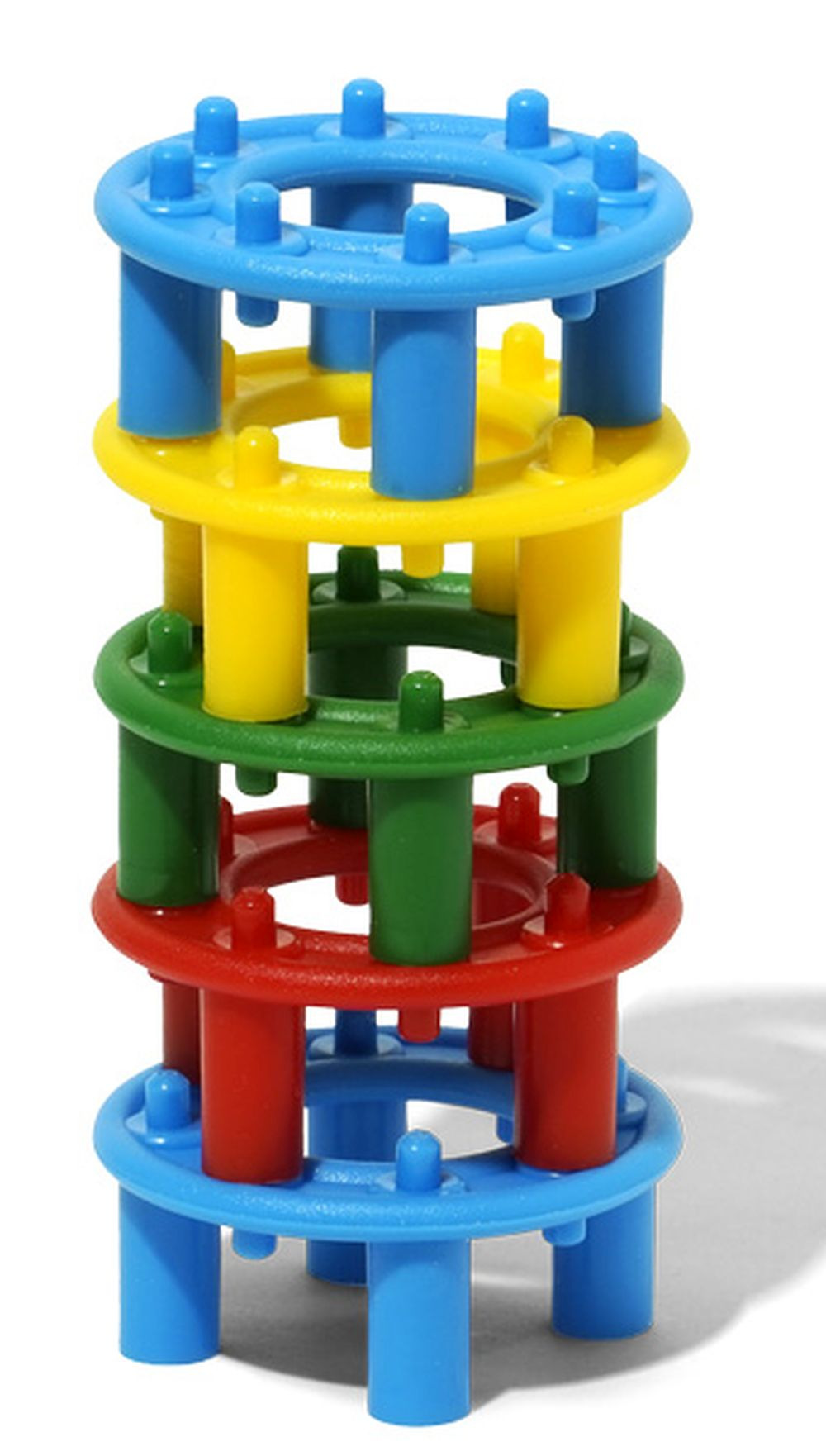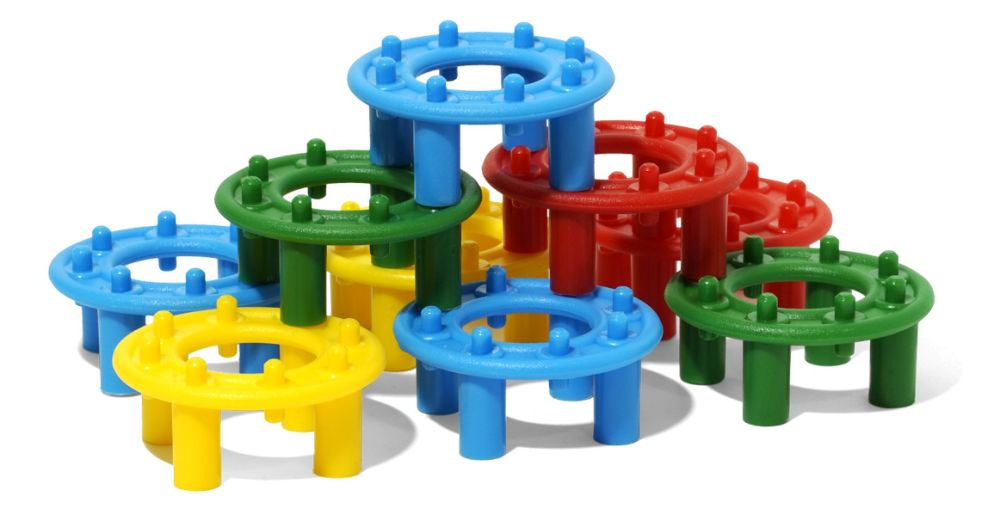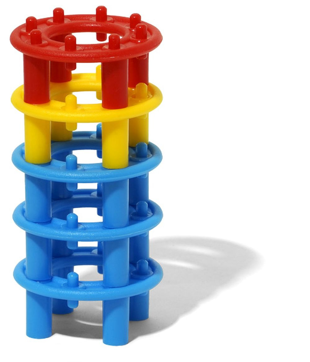 Kroužková stavebnice obsahuje 96 dílků ve 4 barvách. Je vhodná již pro nejmenší děti od 1 roku. Pomáhá jim procvičovat cit v prstíkách a poznávat základní barvy.