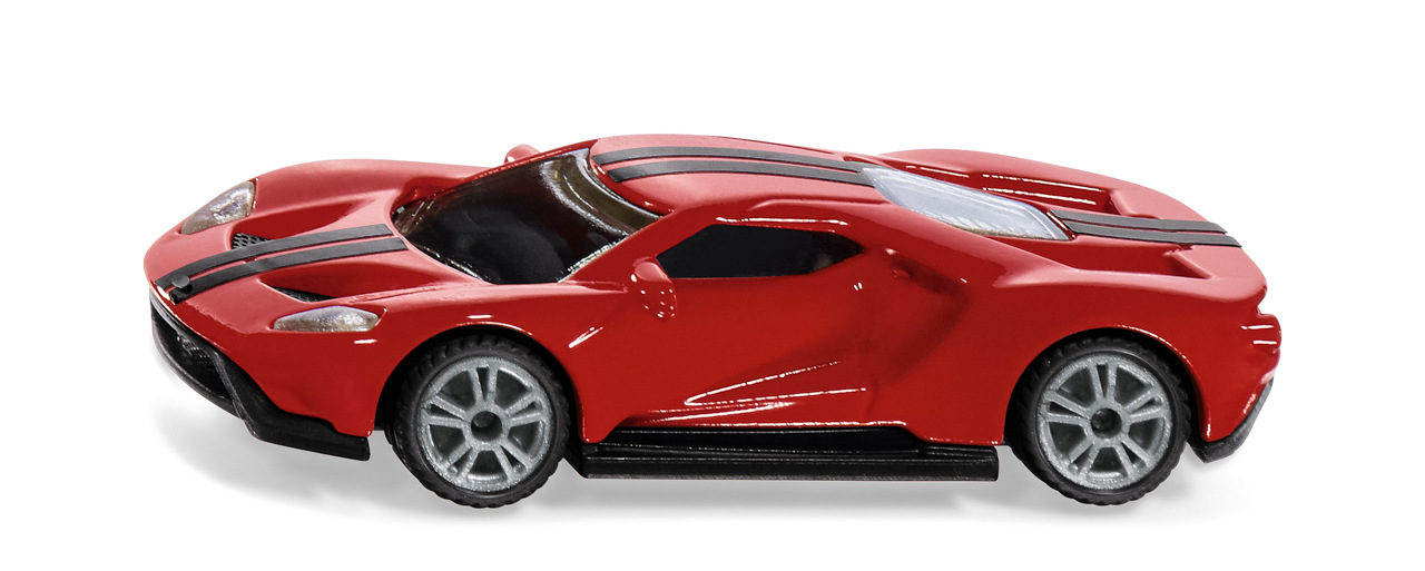SIKU Blister – Ford GT. Stylové prvky závodní klasiky GT 40 jsou působivě propojeny na silnici s nejmodernější technologií motoru a sofistikovanou aerodynamikou. Pohon 656 HP s maximální rychlostí 348 km/h. Zrychlení na 100 km/h za pouhých 2,8 s. Se svými sportovními ráfky, širokými pneumatikami zůstává Ford GT na závodní dráze i při vysoké rychlosti. Zapuštěné světlomety a dvoubarevný lak s výraznými závodními pruhy udělají obrovský dojem i když stojí v klidu. Rozměr: 77 x 33 x 19 mm. Rozměr balení: 9,7 x 3,7 x7,8 cm. Věk: 3+