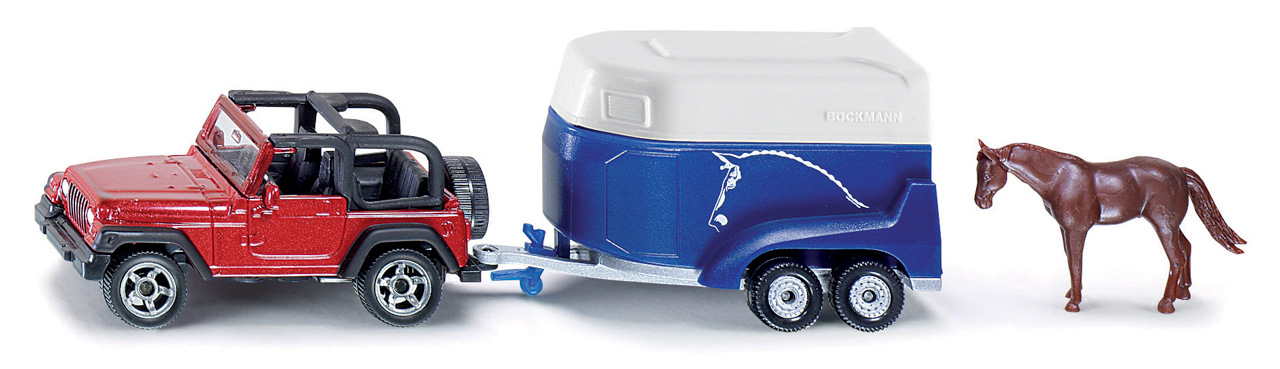 Jeep s přívěsem pro koně je ideální pro děti, které milují terénní auta i koně. Auto, přívěs a kůň splňují nejvyšší kvalitativní i bezpečnostní požadavky. Auto je téměř výhradně vyrobeno ze zinku, což z něj činí robustní a odolný výrobek. Koník a doplňky u auta a přívěsu jsou vyrobeny z plastu. Přívěs pro koně má otvírací zadní plošinu pro pohodlný nástup. Přívěs lze jednoduše připojit k autu a po odpojení opět pevně stojí. Sada obsahuje 3 díly. Měřítko: 1:55. Rozměr: 146 x 38 x 42 mm. Rozměr balení: 19,7 x 4,1 x 7,8 cm. Věk: 3+
