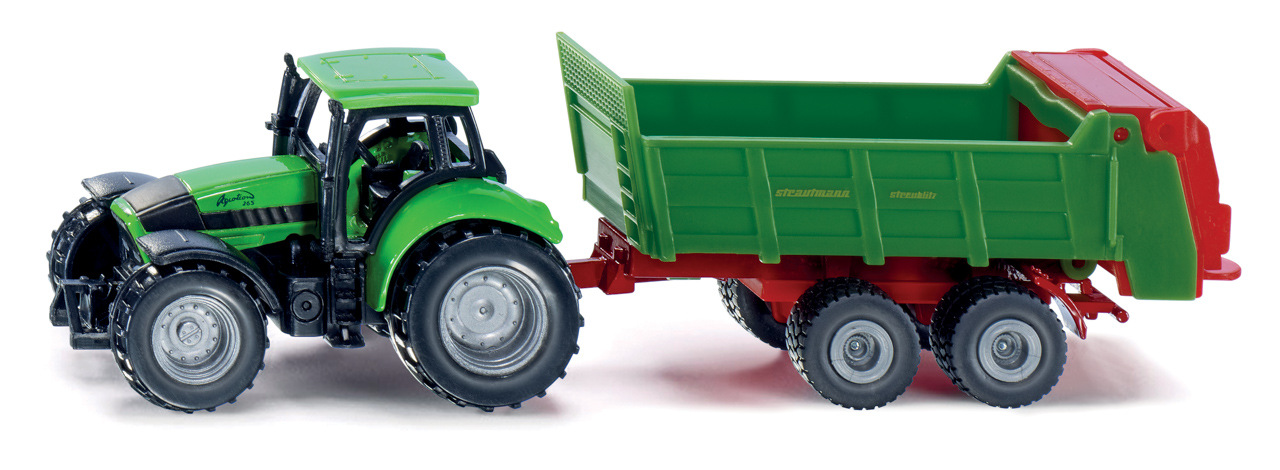 Prvotřídní traktor Deutz je plně zaměstnaný na poli. Táhne za sebou univerzální hnojící přístroj Strautmann, který má otevíratelnou zadní část a flexibilní, nastavitelný zadní ventil. Rozměr: 165 x 36 x 45 mm. Rozměr balení: 19,7 x 3,8 x 7,8 cm. Věk: 3+