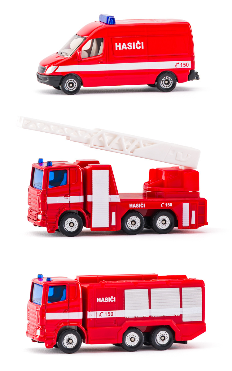Sada hasičských vozidel SIKU v české verzi. Tyto modely SIKU se vyznačují realistickými detaily a jsou vyrobeny z tlakově litých kovových a plastových komponentů. Sada obsahuje tři vozidla: Velký požární vůz s výsuvným žebříkem, hasičskou dodávku a velký hasičský vůz. Baleno v blistru. Rozměry balení: 7,8 x 19,7 x 3,8 cm. Věk: 3+