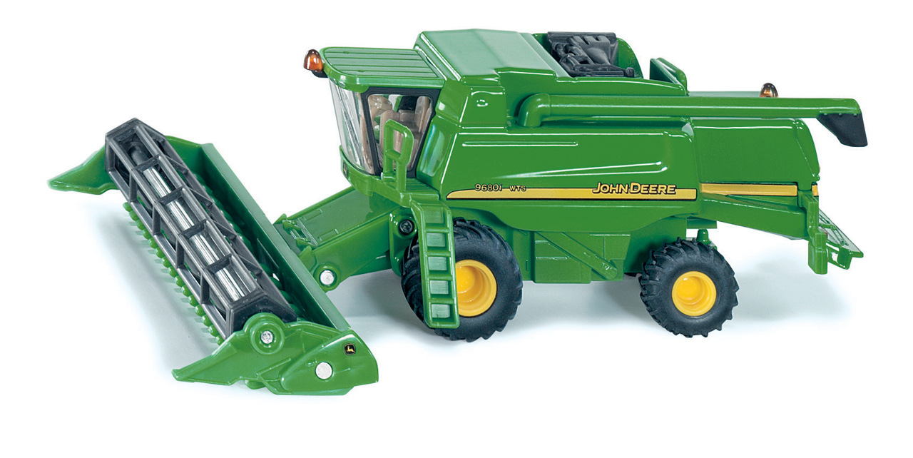 John Deere 9680i je největší kombajn vyráběný v Evropě. Jeho model od firmy SIKU v měřítku 1:87 je téměř celý z kovu. Je vybaven otáčejícími se koly, která jsou vytvořena do detailu podle skutečnosti. Stroj má otočné rameno pro výsyp vymláceného zrna a pohyblivou žací část. Model je vhodný jak do sbírky nebo do modelové železnice, tak i ke hraní pro děti. Rozměr: 137 x 110 x 46 mm. Rozměr balení: 15,6 x 11,5 x 7,5 cm. Věk: 3+