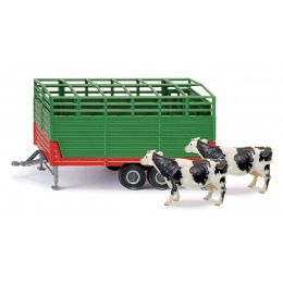 Přívěs za traktor v měřítku 1:32. Dvouosé středové otočné talířové přívěsy jsou nezbytnou součástí pracovního zařízení při farmářských pracích a sklizni. Přívěs je vybaven kovovým podvozkem a sklopným plastovým žlabem. Pravá bočnice lze otevřít. Funkce sklopení je umístěna na pravé straně. Spojka přívěsu umožňuje spojit dva z těchto přívěsů jako sběrný tým. Rozměr balení: 115 x 210 x 82 mm. Rozměr: 185 x 69 x 91 mm. Věk: 3+