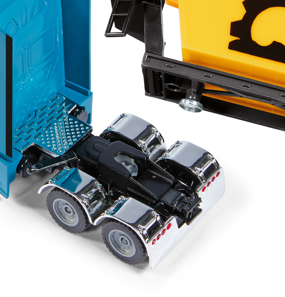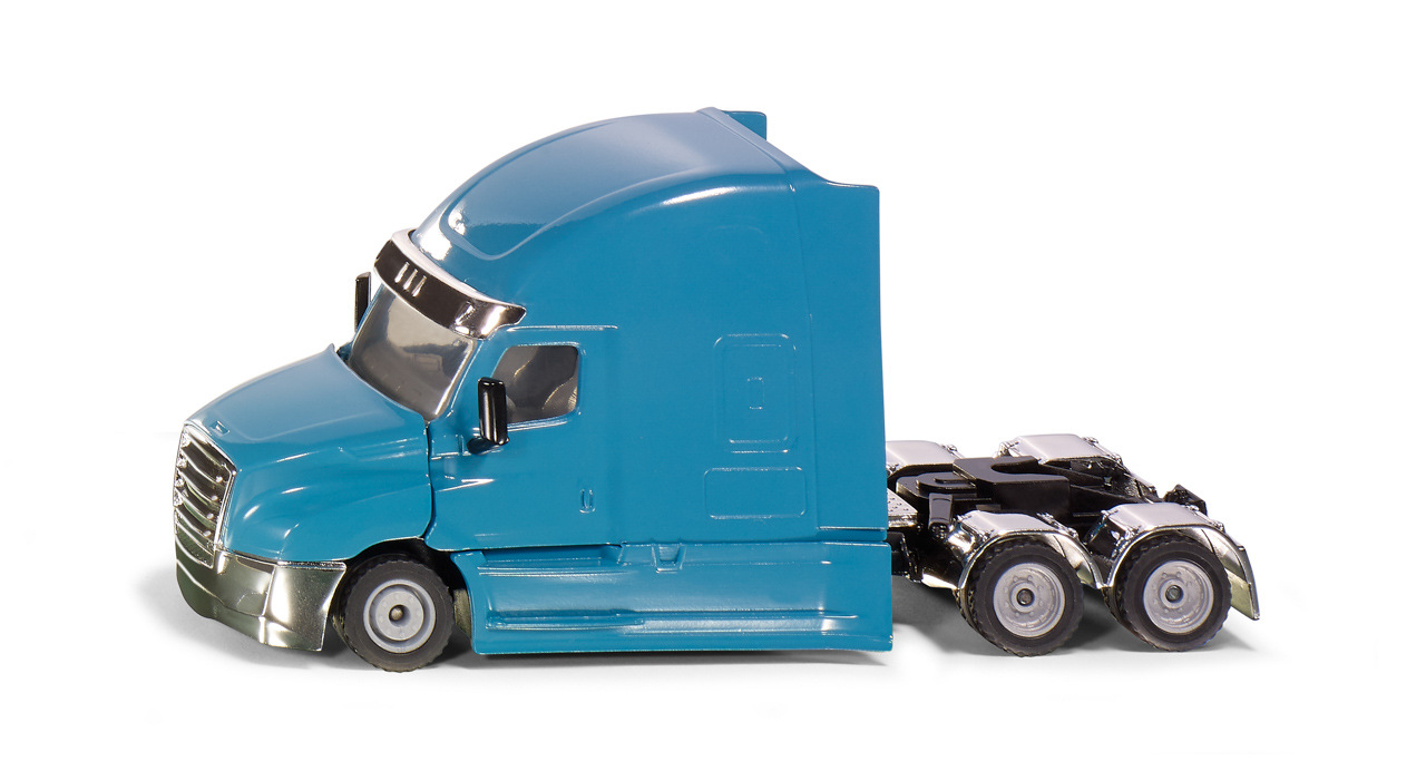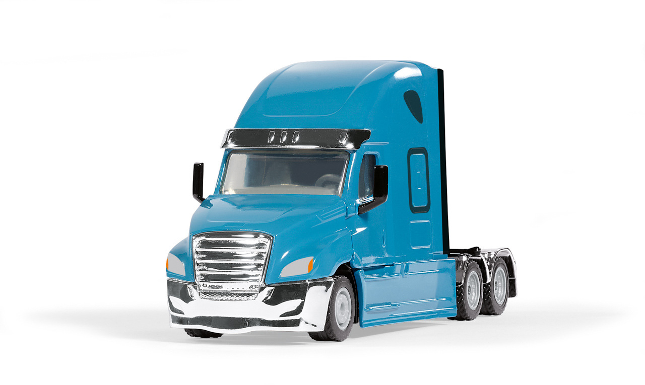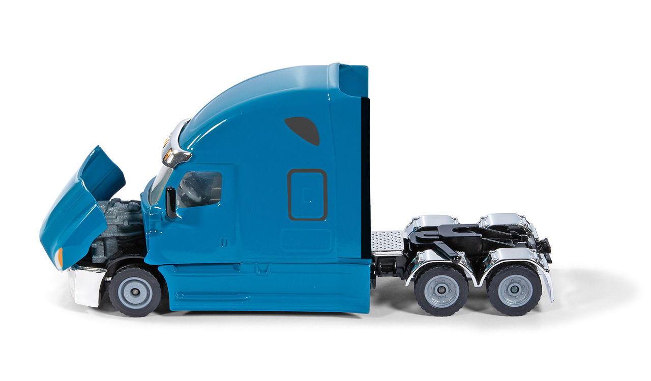 S touto těžkou váhou Daimler ukazuje, kdo je šéf: Freightliner, vyrobený pro americké dálnice, je nejprodávanější značkou nákladních vozidel ve své váhové třídě v Americe. Freightliner je totiž extrémně robustní a spolehlivé vozidlo, které lze používat každý den i v těch nejnáročnějších podmínkách. Nový model Cascadia, masivní americký nákladní vůz s třínápravovým podvozkem, je vlajkovou lodí v sektoru dálkové dopravy a působivou kombinací nejnovějších technologií, efektivity a bezpečnosti. A nezapomnělo se ani na řidiče: V zadní části kabiny řidiče je obrovský prostor na spaní, který na silnici funguje jako pohodlný ostrůvek odpočinku. Lak „Miami Blue“ a chromované prvky obzvláště dobře zvýrazňují poutavý design nákladního vozu. Kapota se dá otevřít. Model siku je samostatná trakční jednotka, kterou lze díky integrované standardní spojce kombinovat se všemi přívěsy řady siku Super. Rozměry balení: 23,5 x 11,5 x 7,2 cm. Věk: 3+