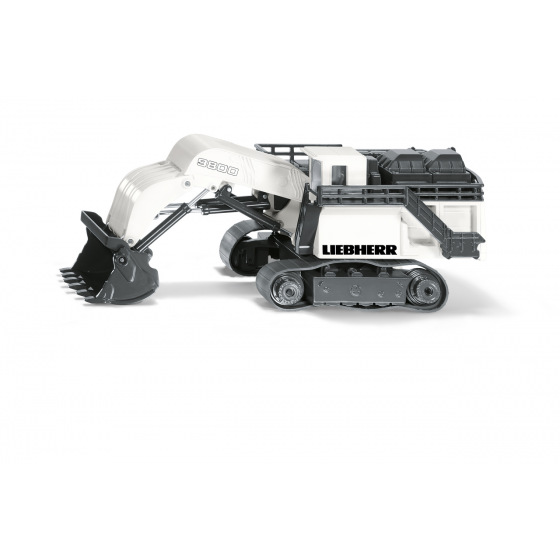 Tento obří pásový bagr se hodí na každou stavbu a zvládne spoustu těžké práce. Řada R9800 firmy Liebherr patří k největším a nejvýkonnějším bagrům na světě. Dva široké pásové řetězy pomáhají stroji v pohybu. Rypadlo/nakladač se sklápěcí lopatou je plně funkční a rychle naloží jakýkoli těžký náklad. Model je vyroben z kvalitního a odolného materiálu v měřítku 1:87.