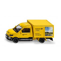 SIKU Super – Žlutá dodávka, elektrický transportér pro dodávky zásilek. Chod motoru je velmi tichý. Elektrický transportér je navržen speciálně pro dodávání balíků. Transportér je kompaktní, snadno manévrovatelný a svižný v městském provozu. Zapuštěné přední světlomety podtrhují výrazný design. V detailním měřítku 1:50 je kabina řidiče a podvozek vyroben z kovu. Lze otevřít zadní plastové dveře. Designové ráfky s gumovými pneumatikami. Tažné zařízení. Rozměr: 99 x 39 x 39 mm. Rozměr balení: 13,9 x 5,1 x 8,7 cm. Věk: 3+