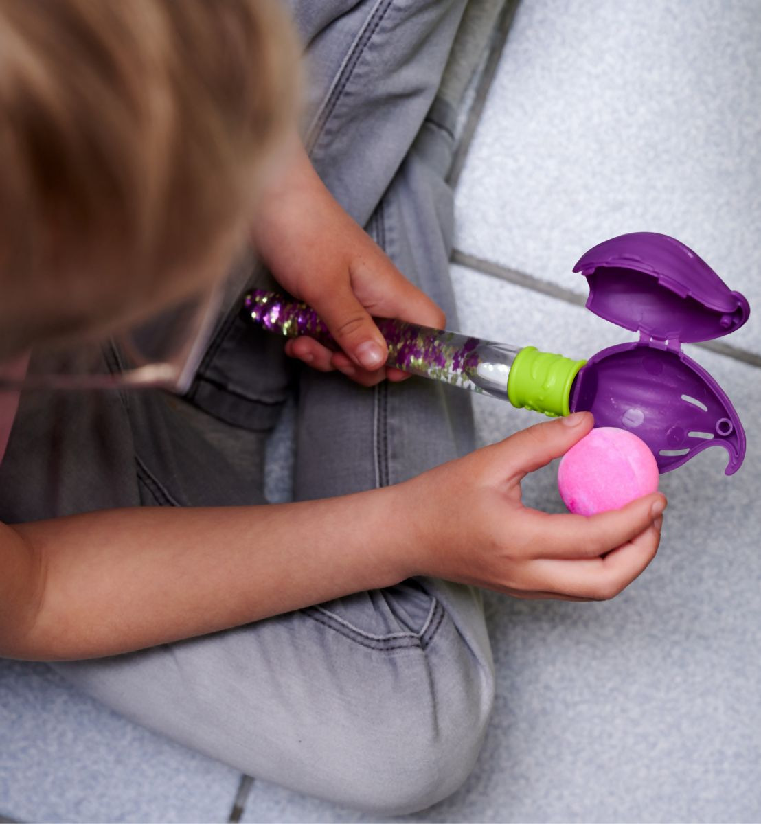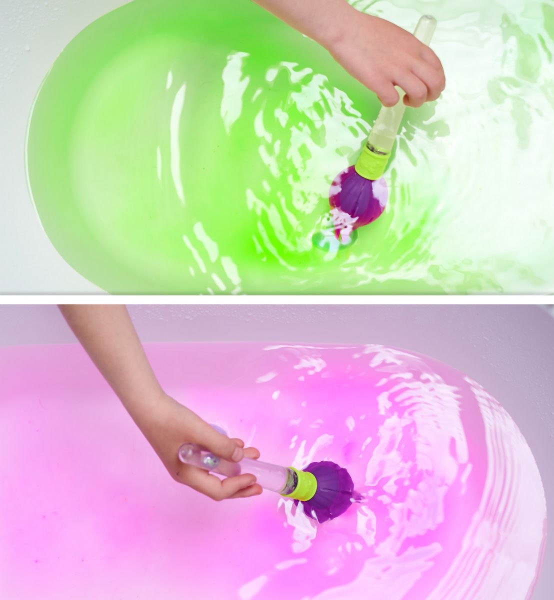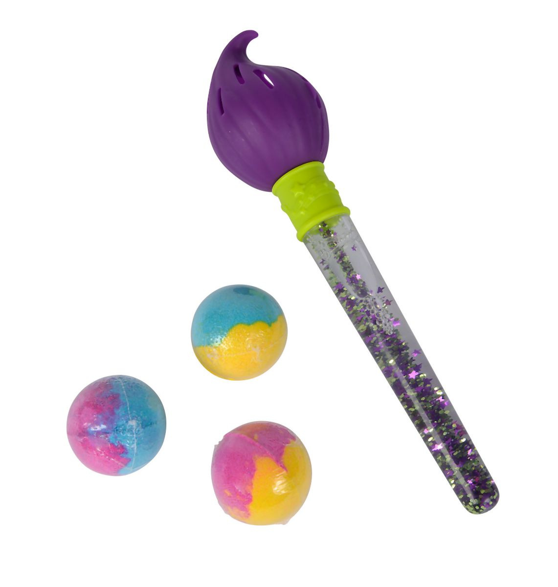 Kouzelný štěteček do vany a 3 vodní šumivé barevné bomby v balení. Šumivé koule ze vkládají do štete