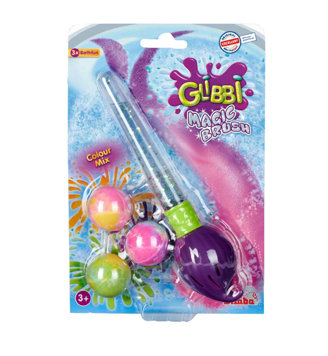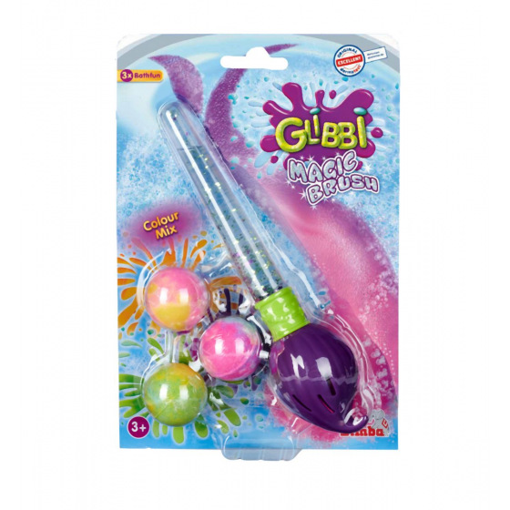 Kouzelný štěteček do vany a 3 vodní šumivé barevné bomby v balení. Šumivé koule ze vkládají do štetečku a se štetečkem lze potom malovat ve vodě.