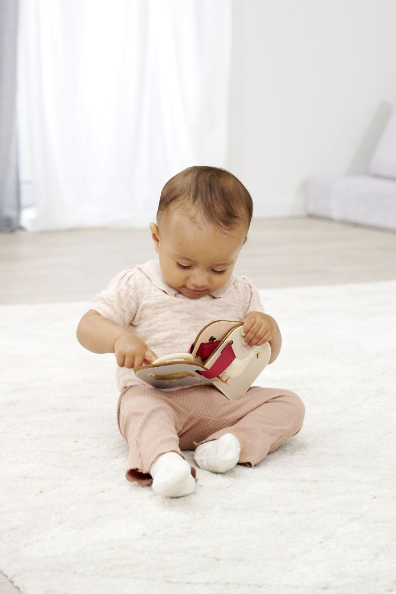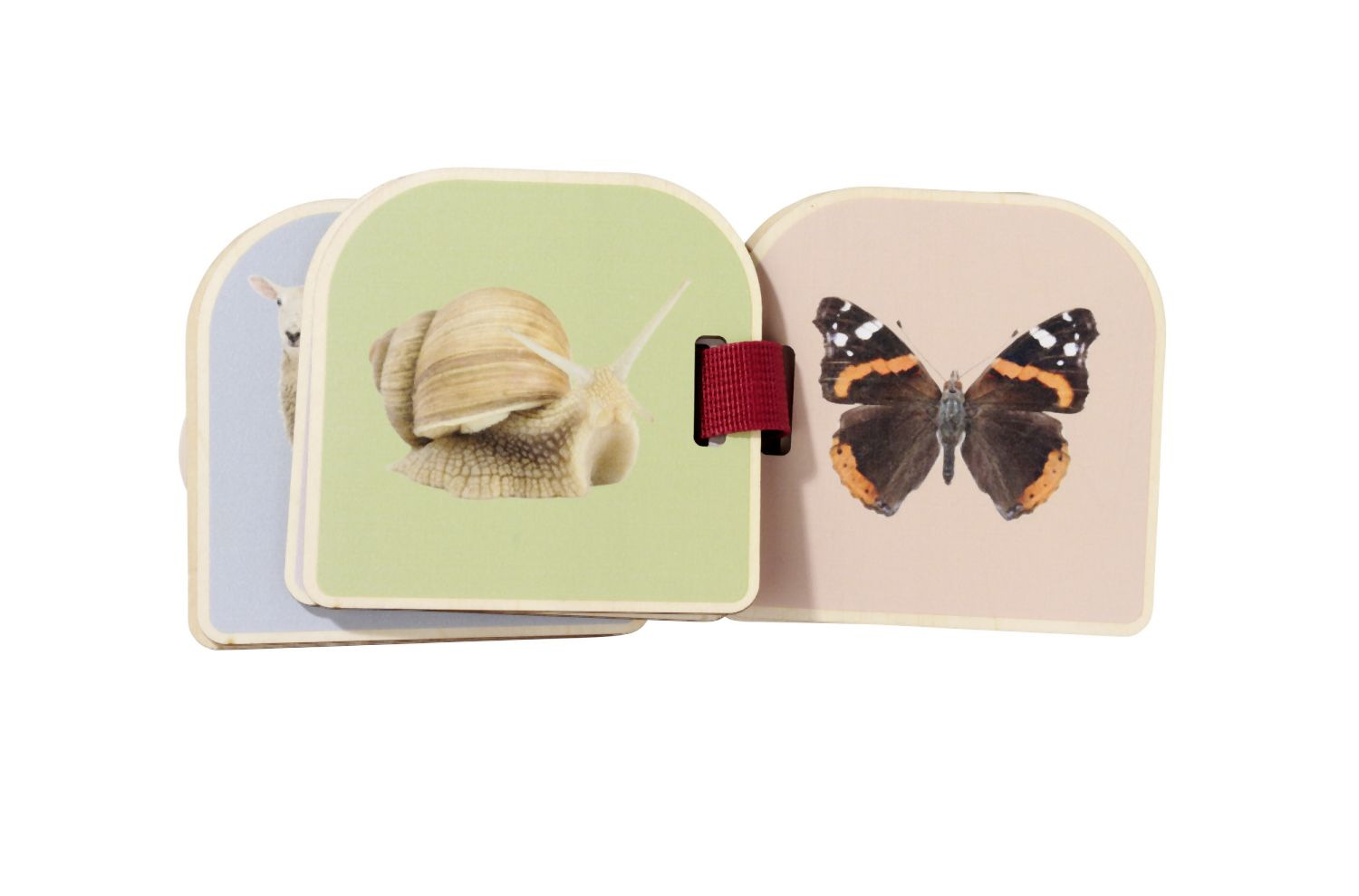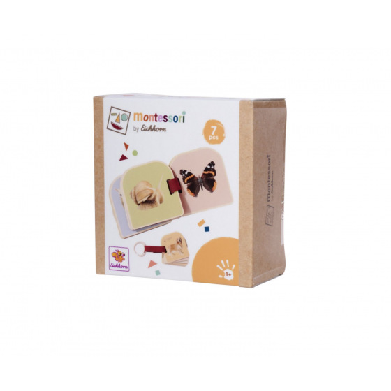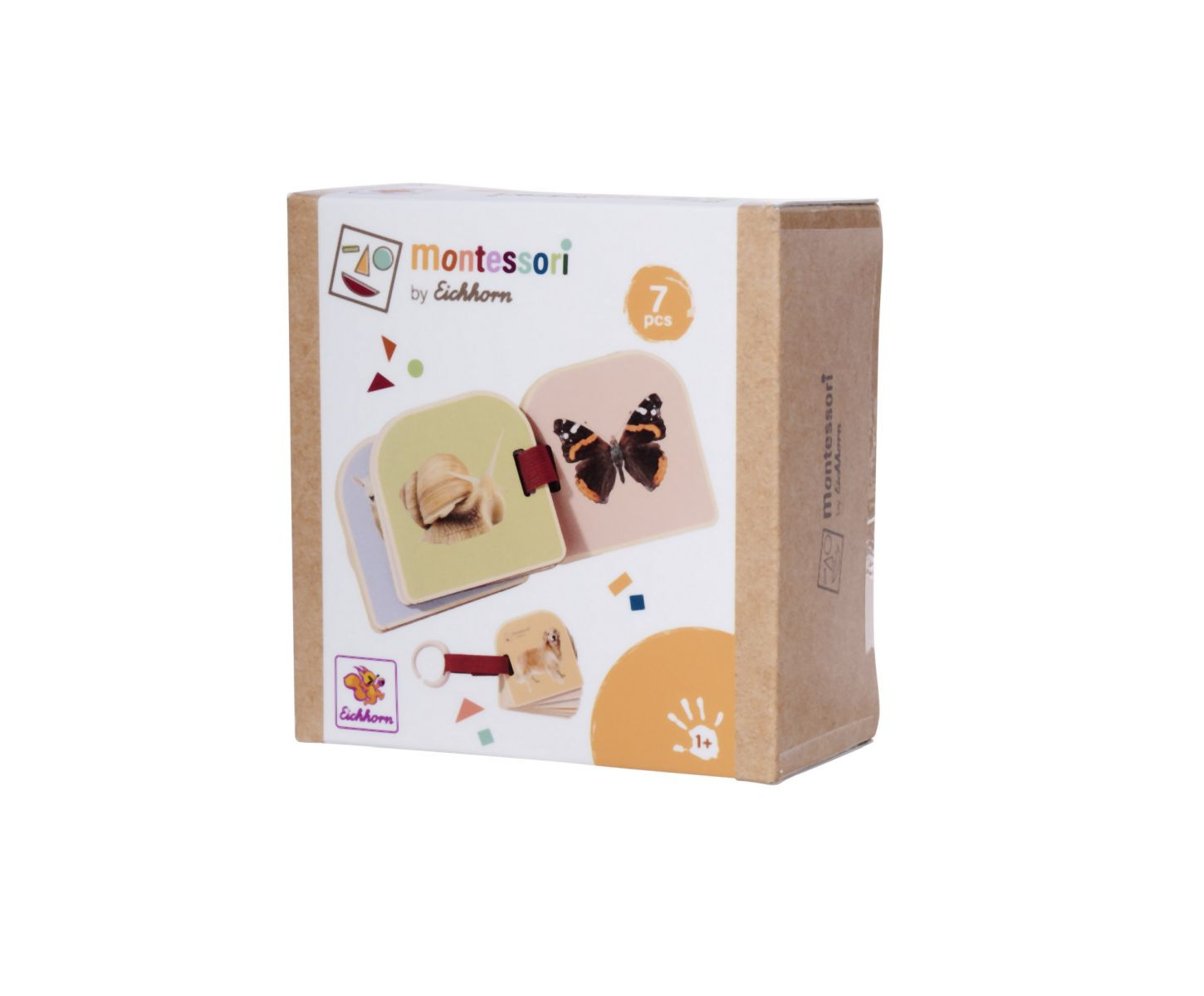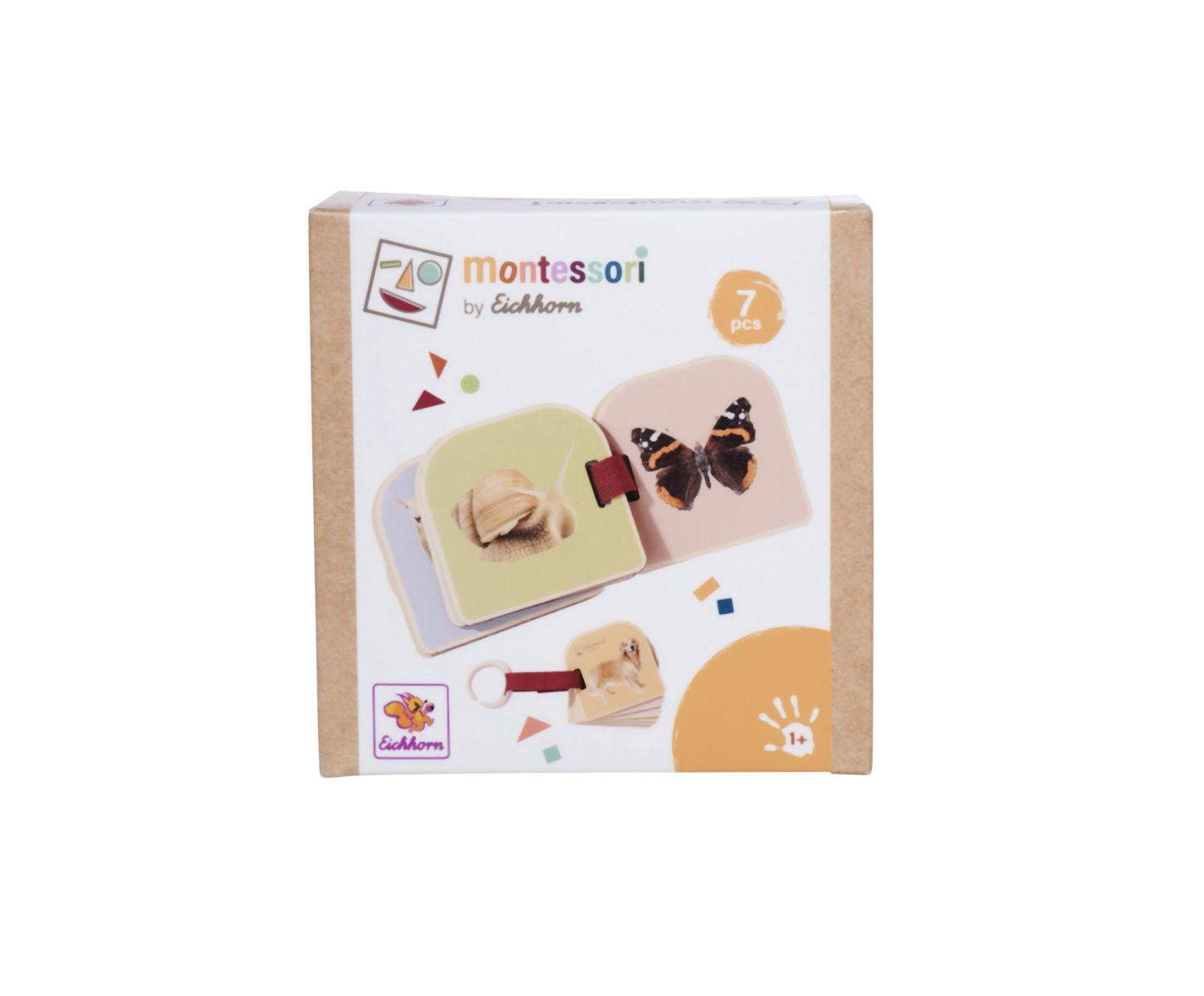 Krásná dřevěná knížka je prvním společníkem vašeho dítěte. Na 6 dřevěných stránkách najdete z obou stran roztomilé obrázky zvířátek. Knihu lze pomocí kroužku připevnit ke kočárku nebo autosedačce. Nebo ji umístěte před dítě, aby si mohlo obrázky prohlížet samo. Velikost a zaoblené rohy jsou ideální pro malé dětské ruce. Obrázková knížka Montessori je vyrobena ze 100% lipového dřeva s certifikátem FSC a je vhodná pro děti od 1 roku.