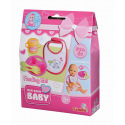 Sada pro miminka z řady New Born Baby obsahuje dudlík, plenu a lahvičku s mlékem (mizející efekt při pití). Vhodné pro panenky velikosti 38 - 43 cm.