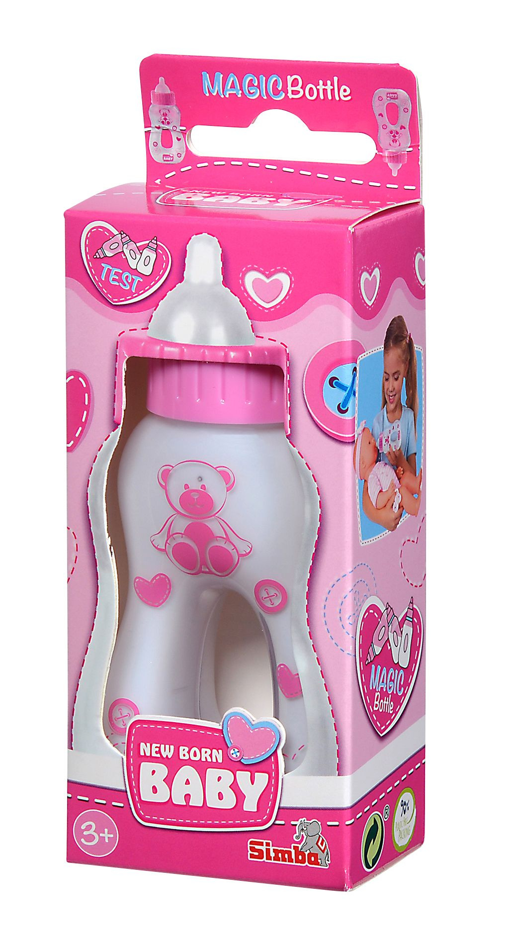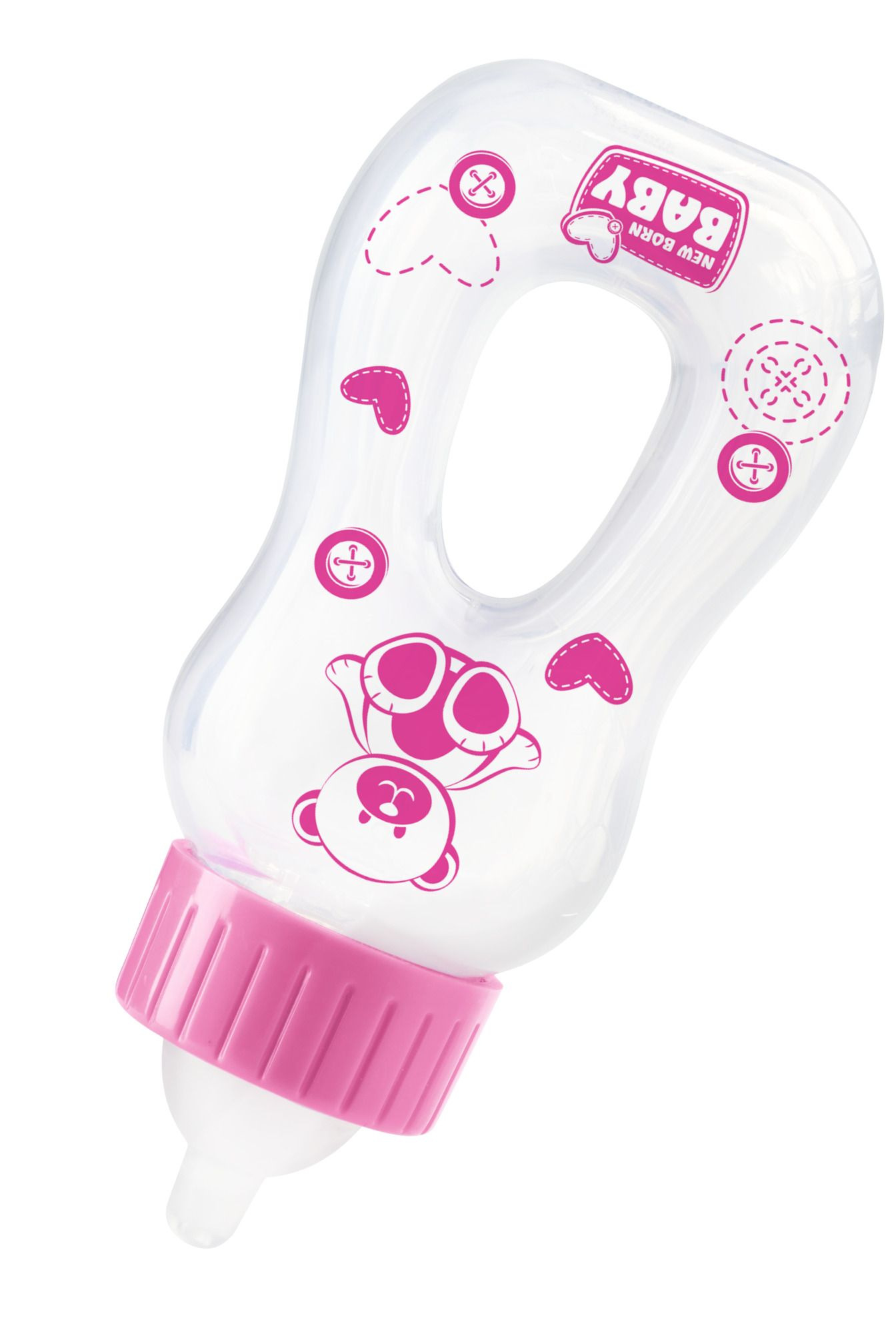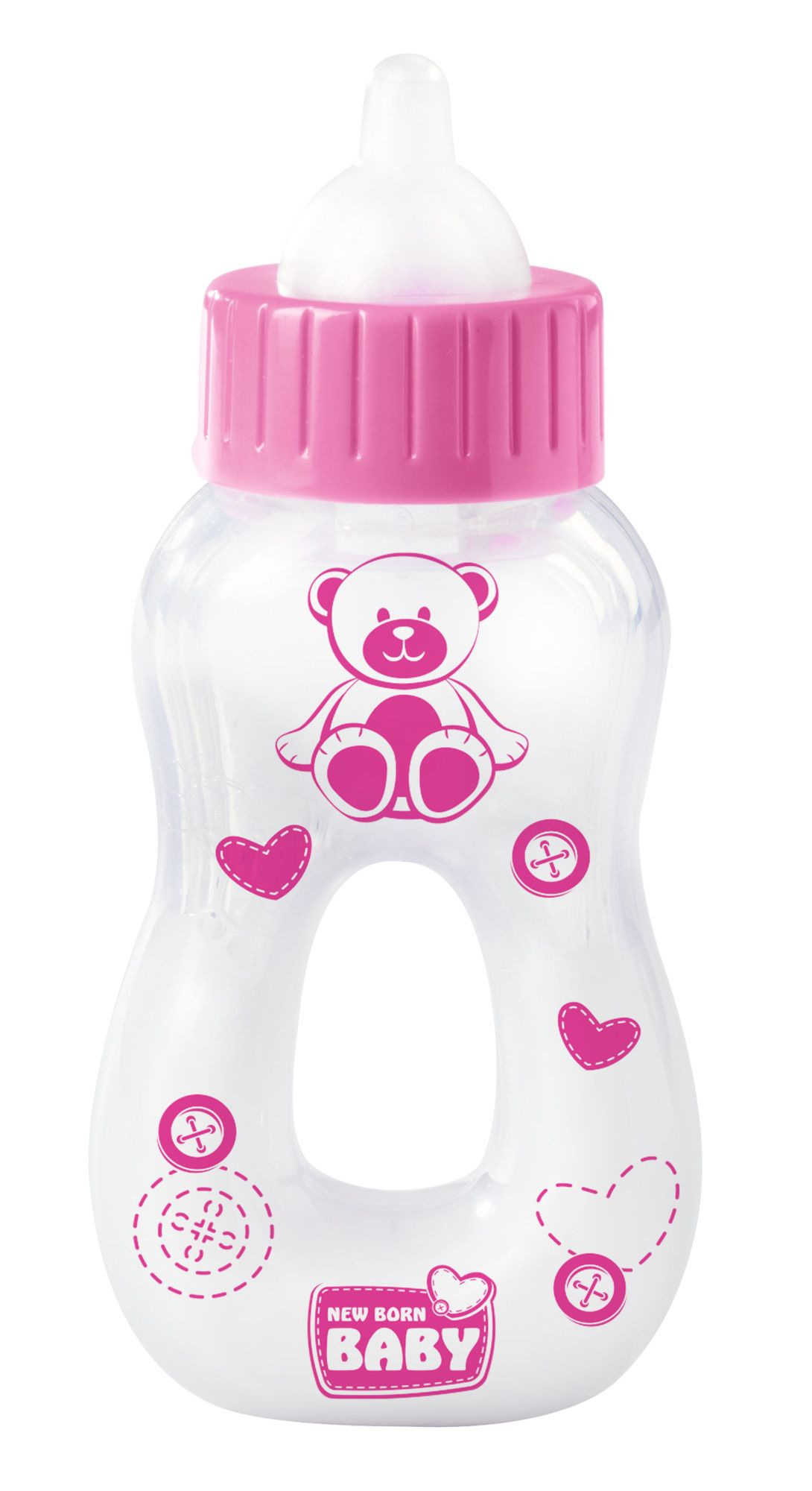Sada pro miminka z řady New Born Baby obsahuje dudlík, plenu a lahvičku s mlékem (mizející efekt při pití). Vhodné pro panenky velikosti 38 - 43 cm.