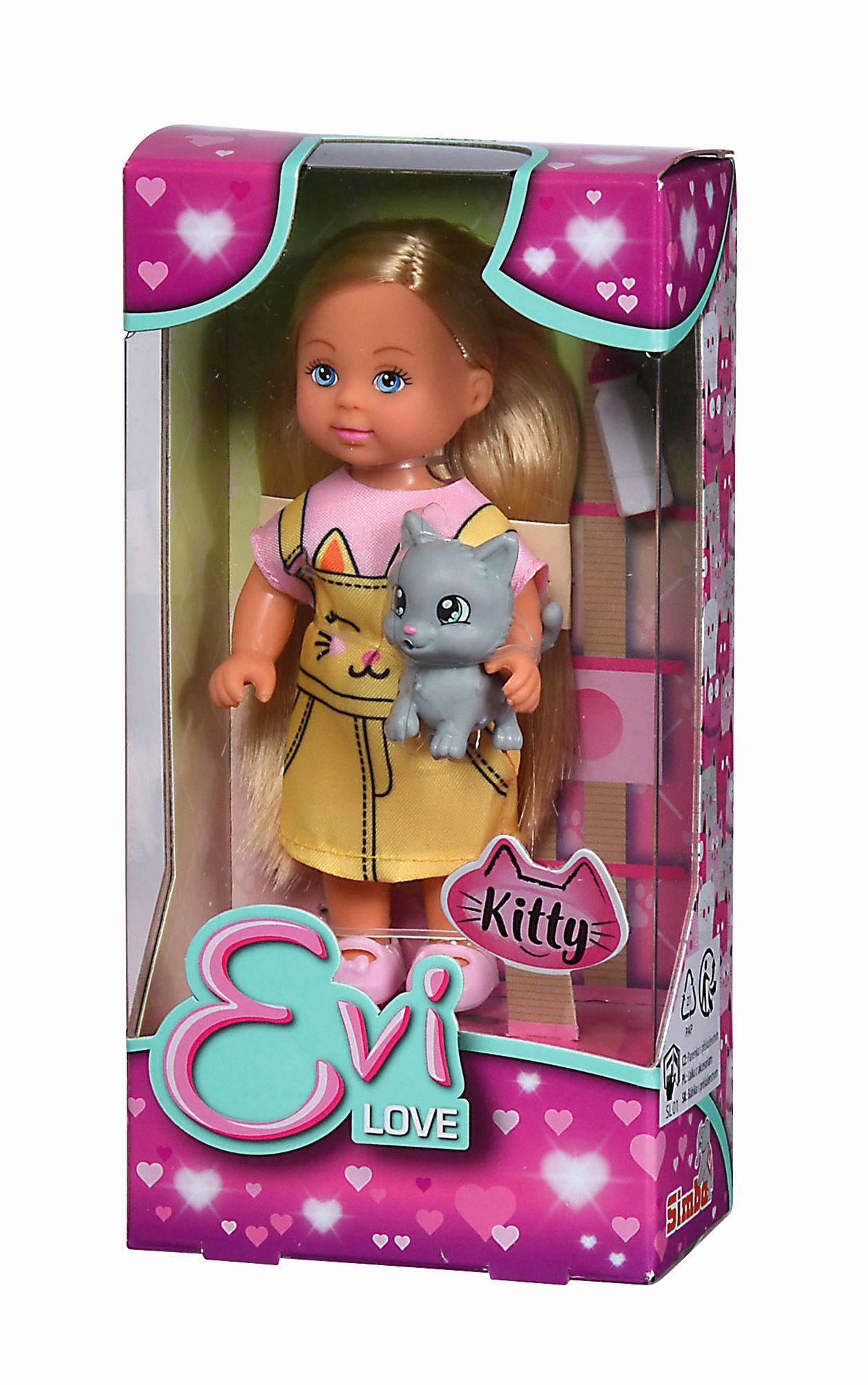 Panenka Evička má svého zvířecího mazlíčka. 3 druhy zvířátek: králíček, pejsek nebo kočička. Výška panenky 12 cm.