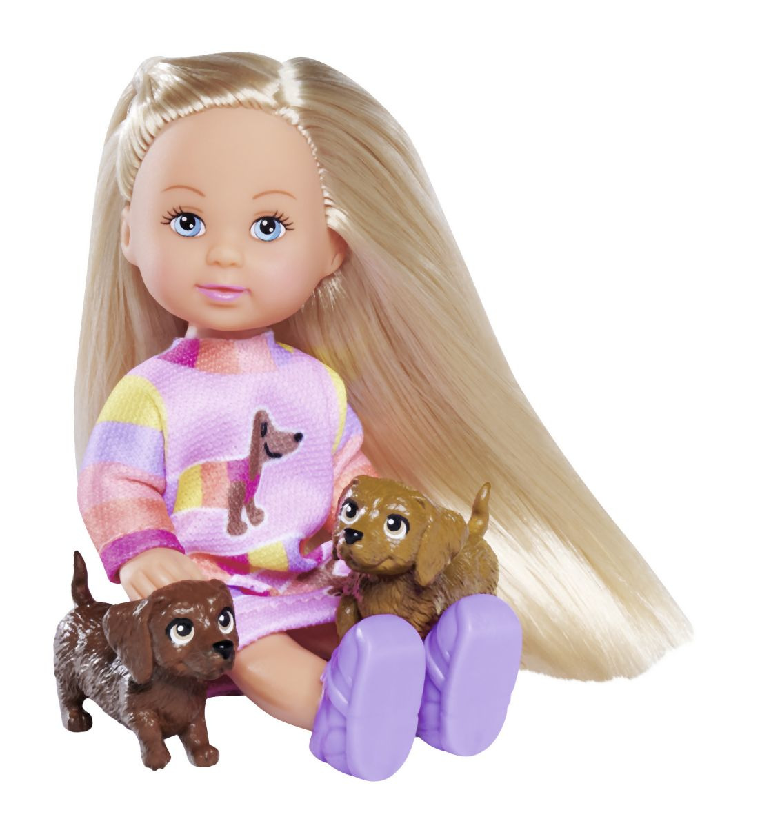 Panenka Evička má psího mazlíčka, který dostal novou boudu. Výška panenky: 12 cm.