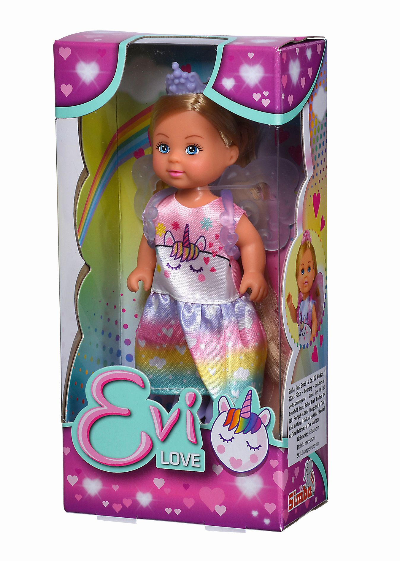 Panenka Evička jako roztomilá víla s potiskem jednorožce a odnímatelnými křídly. Výška panenky 12 cm.