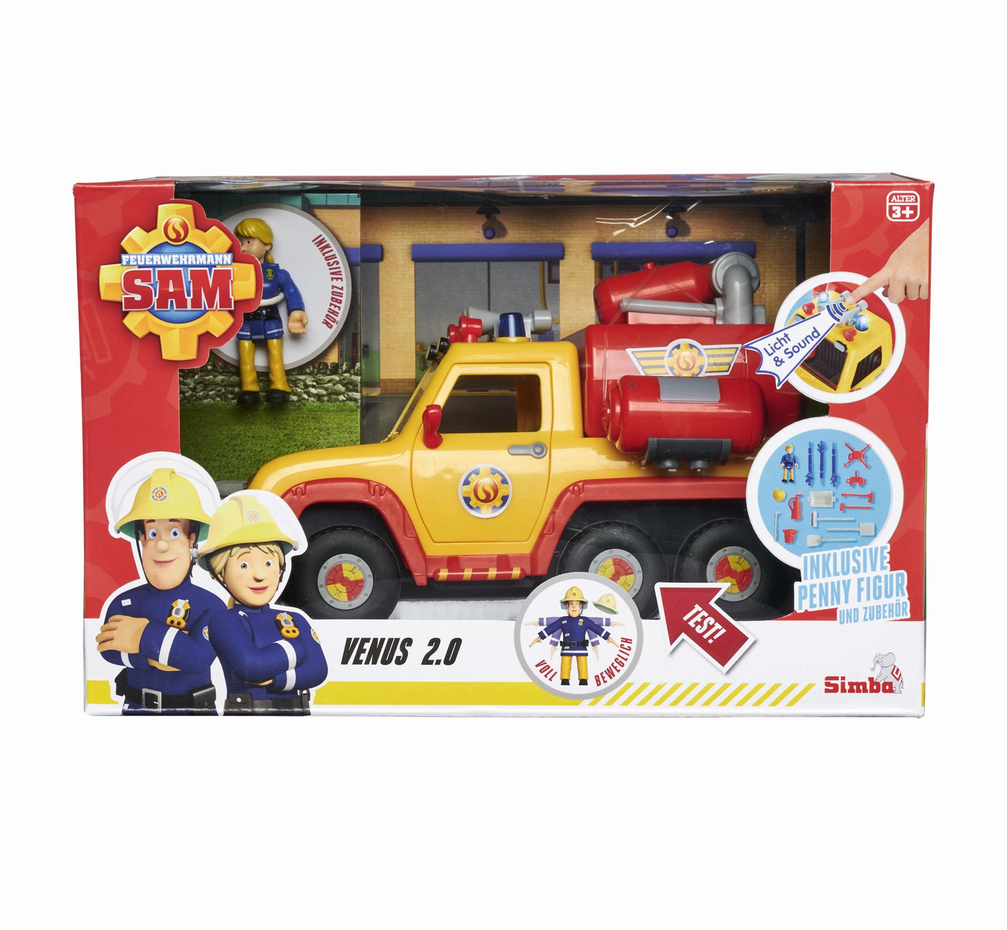 Hasičské auto se zvukem, stříkačkou, otevírací dveře. Figurka Penny součástí a další příslušenství. Délka auta 19 cm.