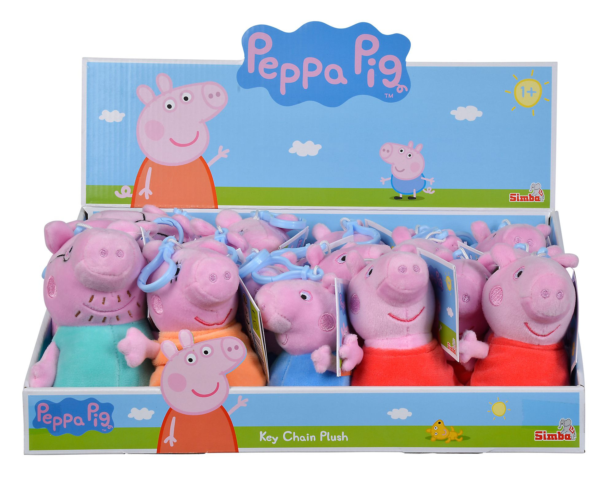 Přívěsek na batoh - hrdinové seriálu Prasátko Peppa - displej obsahuje Peppu (9x) a prasátko Toma, maminku Prasátko a tatínka Prasátko (každý 3x), Výška: 10-13cm. Displej 18 ks.