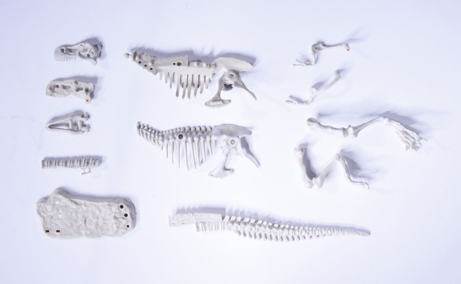 Sada na vykopávání kostry dinosaura, 12 různých druhů. Součástí je nářadí a figurka dinosaura. Velik