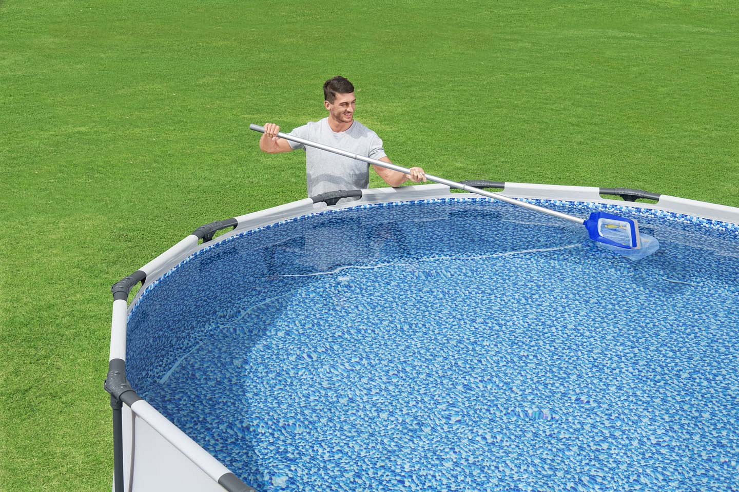 K docílení křišťálově čisté vody ve Vašem bazénu budete potřebovat příslušenství k odstraňování hrubých nečistot, a k tomu je ideální bazénový vysavač. Sada obsahuje: 4dílná tyč (190 cm), adaptér, znovupoužitelný sáček na nečistoty a listí, 2 trysky (jedna s kartáčkem), 6 m hadice (prům. 32 mm) Rozměry: 50 x 21 x 21 cm