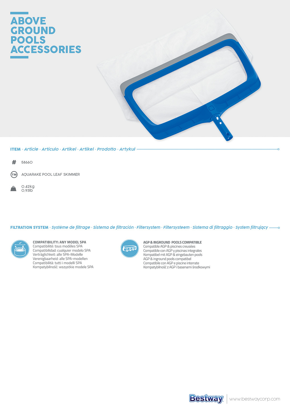 Síťka určená ke sbírání odpadu z vody. Kompatibilní s tyčemi o vnitřním průměru 30 mm. Měkká přední část lopatky pro snadné sbírání nečistot. Rozměry: 50 x 40 x 4,6 cm