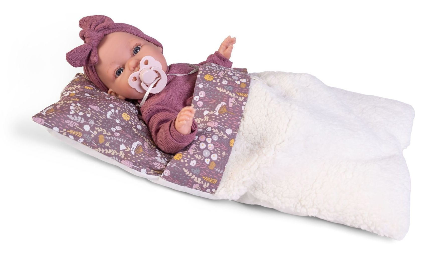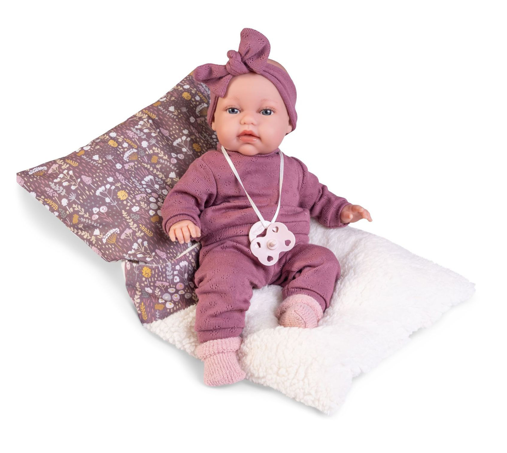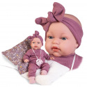 Hovoriaca, ručne vyrobená realistická španielska bábika - bábätko. Po zatlačení na bruško začne bábika vydávať zvuky podobné detskému žvatlaniu. Bábika má mäkké látkové telo, hlava a končatiny sú vyrobené z kvalitného mäkčeného vinylu. Oblečenie niektorých bábik bolo vyrobené z organickej bavlny, ktorá zaručuje výrobu z ručne zbieranej, ekologicky bez chemického ošetrenia pestovanej bavlny. Firma Antonio Juan kladie veľký dôraz na ekológiu a preto ako prvá využíva v tomto odvetví spomínanú bavlnu. Veľkosť 34 cm. Balené v darčekovej krabici. Odporúčaný vek od 3 rokov. Súčasťou balenia je 3 x gombíková batéria LR44 s návodom na jej výmenu. Batérie sú spotrebný tovar a preto ich vybitie nie je dôvodom na reklamáciu bábiky.