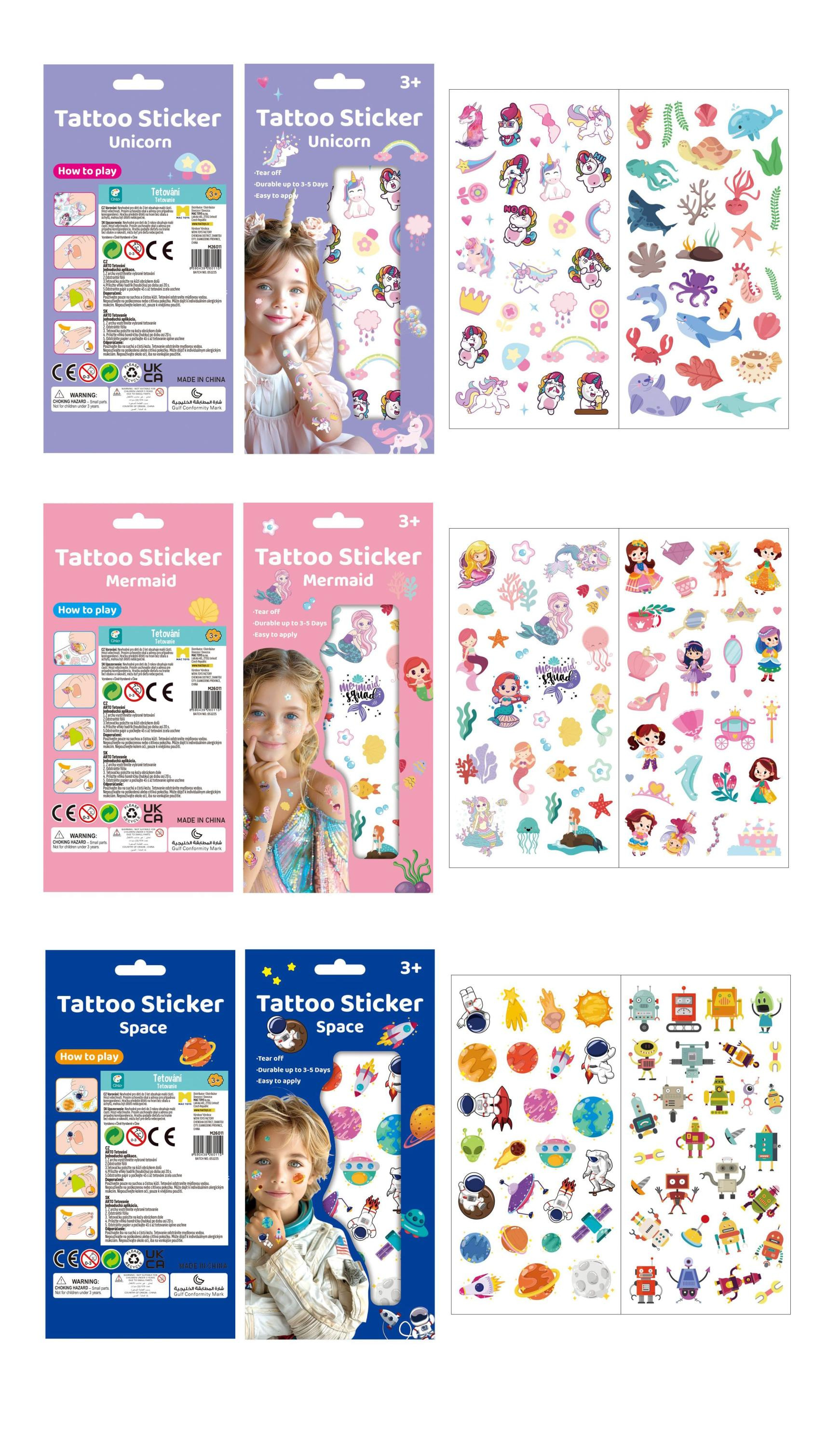 ARTO Dočasné tetování – Tvůj styl, tvá pravidla! Buďte vidět! S kolekcí tetování ARTO si můžete dopřát originální "vylepšení" pokožky, které vypadá skvěle a jeho aplikace je naprostá hračka. Od jemných třpytivých motivů až po drsné pirátské nebo cool graffiti vzory – ARTO nabízí motivy pro každou náladu a příležitost.. Na kůži se snadno otisknou a přenášejí se s trochou vody.