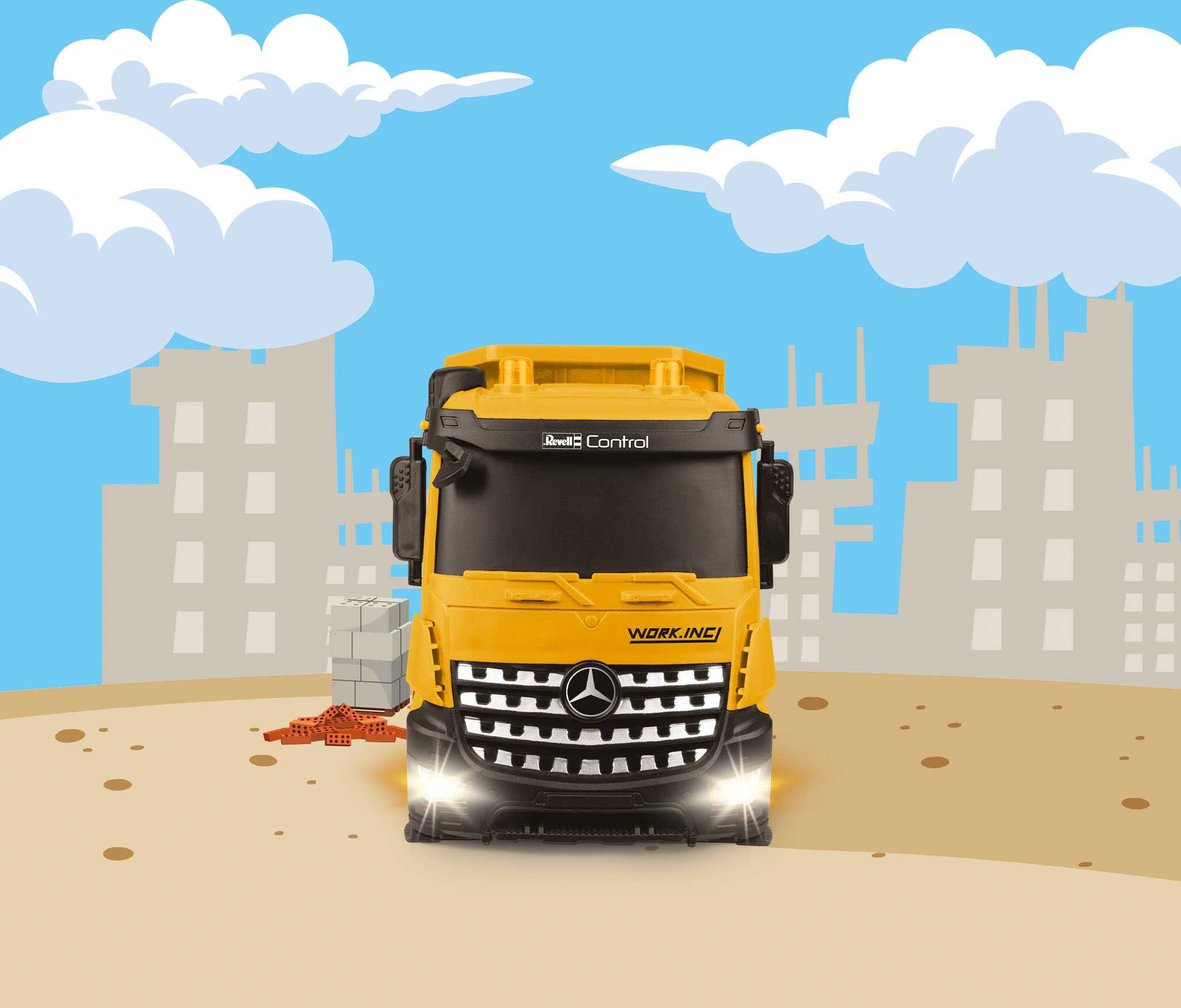 Ponorte sa do vzrušujúceho sveta stavenísk s RC nákladiakom Revell Control Mercedes-Benz Arocs „My Little Dumper“. Tento robustný sklápač v mierke 1:24 je špeciálne navrhnutý pre začínajúcich stavebných robotníkov vo veku od 4 rokov. So svojimi pôsobivými rozmermi 28 cm na dĺžku, 115 mm na šírku a 150 mm na výšku prináša vzrušenie zo staveniska priamo do detskej izby. Vysoko realistický dizajn sa snúbi so vzrušujúcimi funkciami, ktoré sa ovládajú pomocou diaľkového ovládača.
